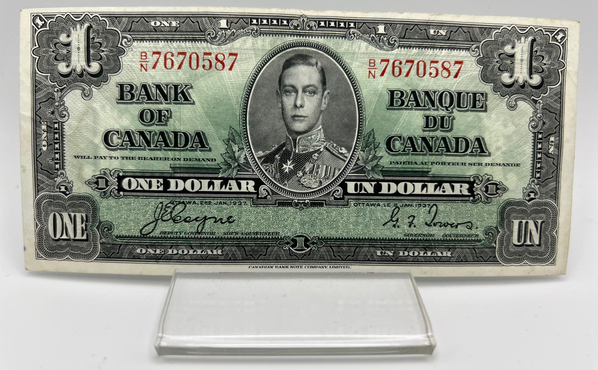1937 Bank of canada BC-21d One Dollars VF-30 Coyne Towers, Serial-BN 7670587