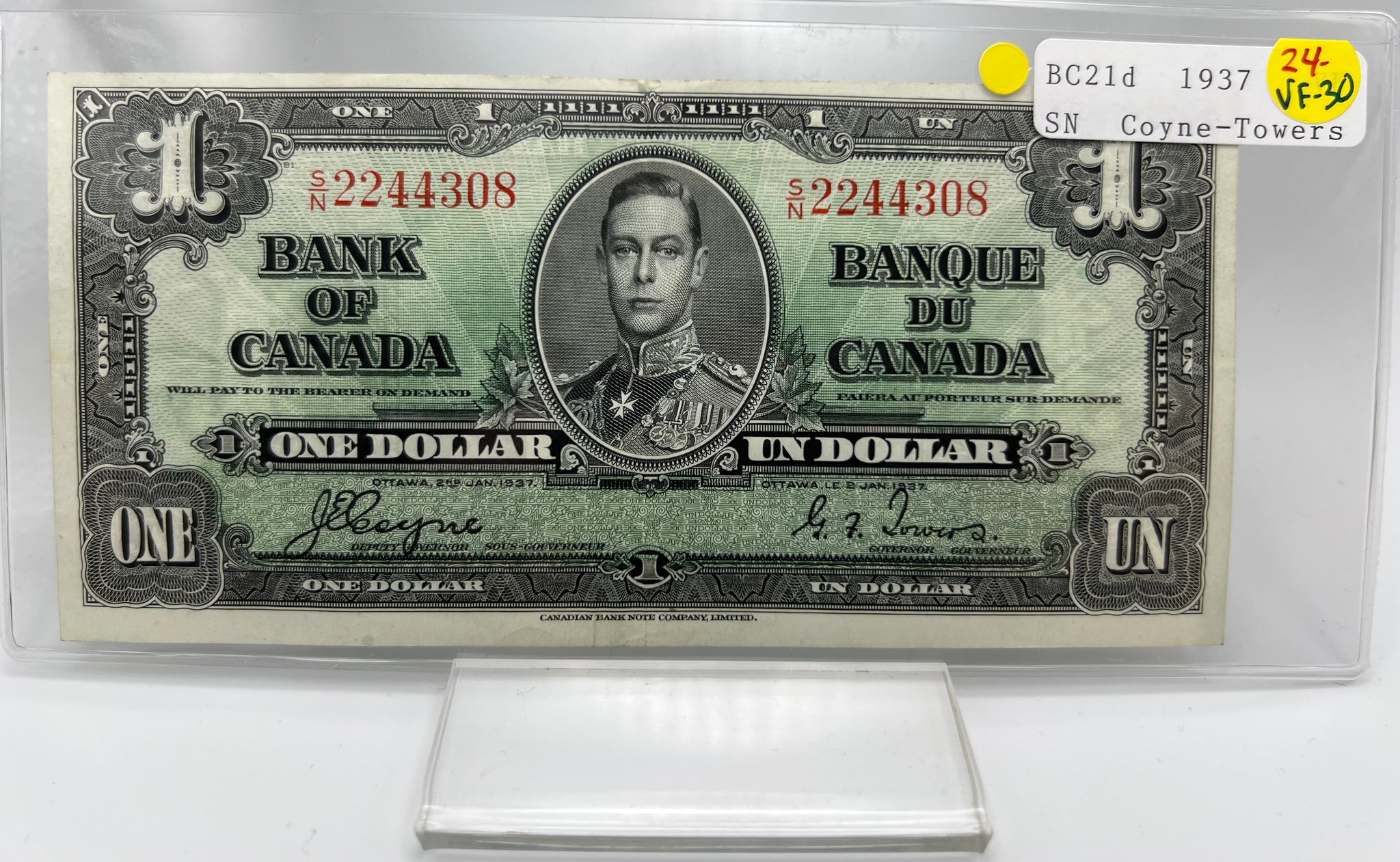 1937 Bank of canada BC-21d One Dollars VF-30 Coyne Towers, Serial-SN 2244308