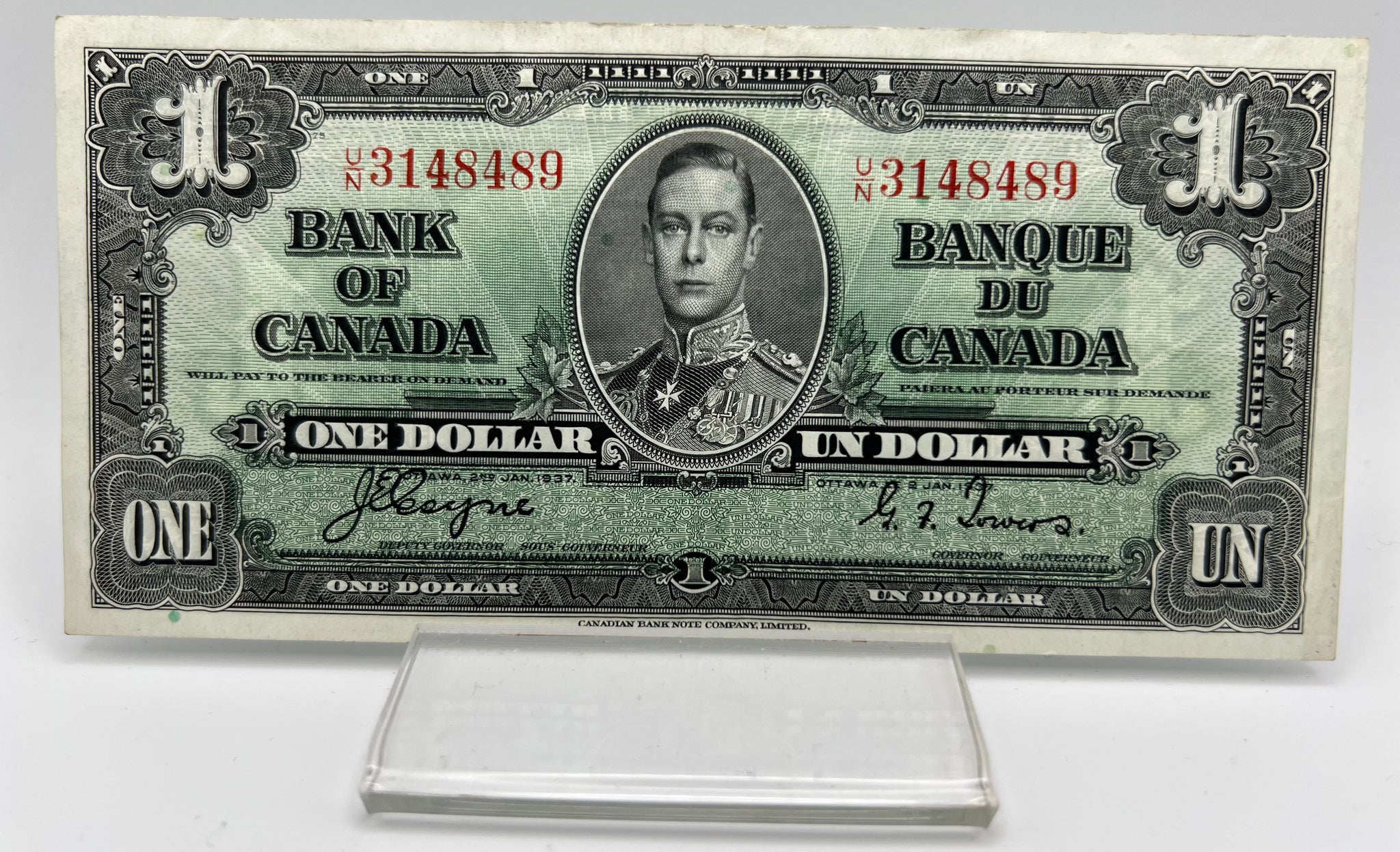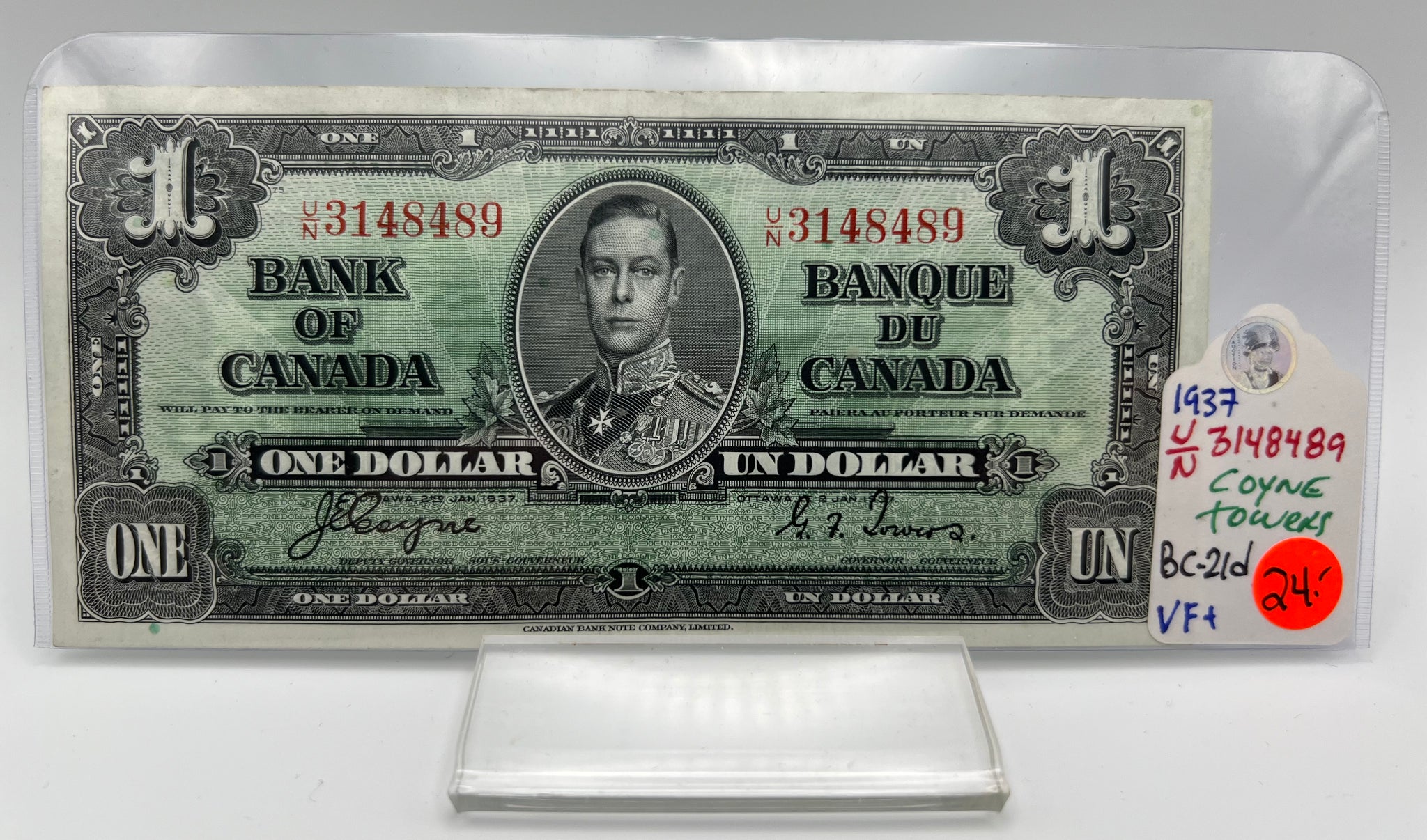 1937 Bank of canada BC-21d One Dollars VF-30 Coyne Towers, Serial-UN 3148489