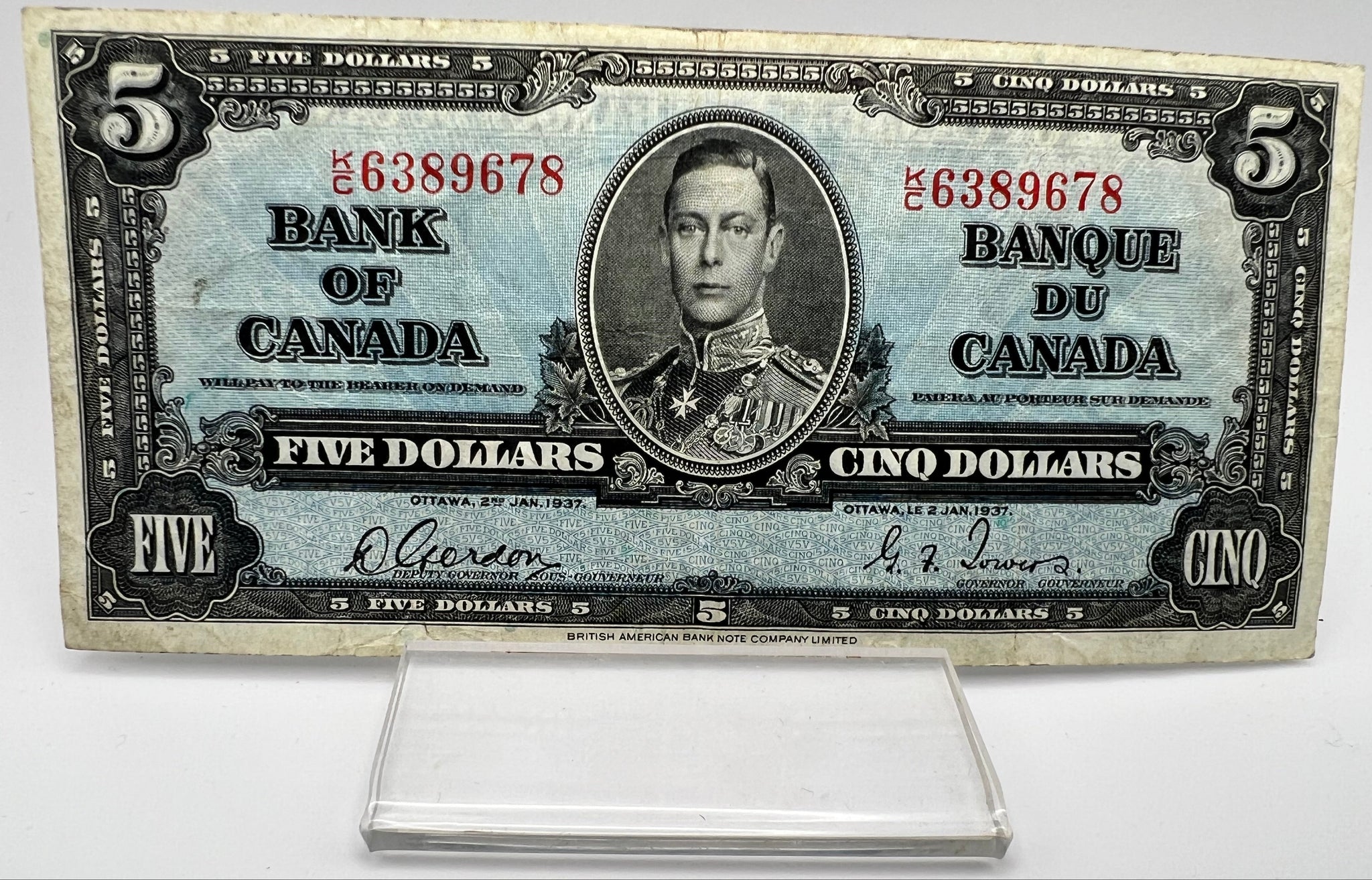 1937 Bank of canada BC-23b Five Dollars F-12 Gordon Towers, Serial-KC 6389678