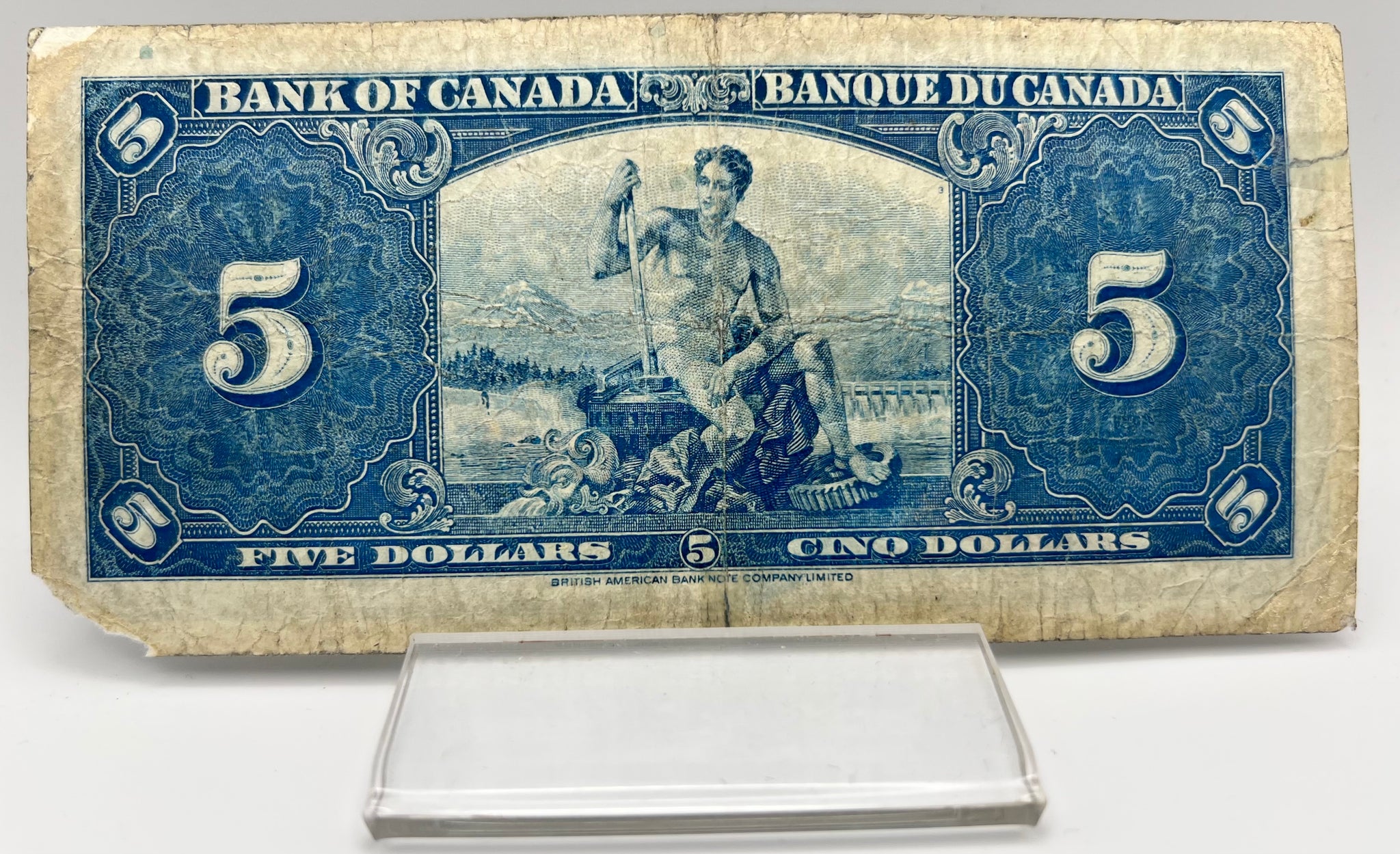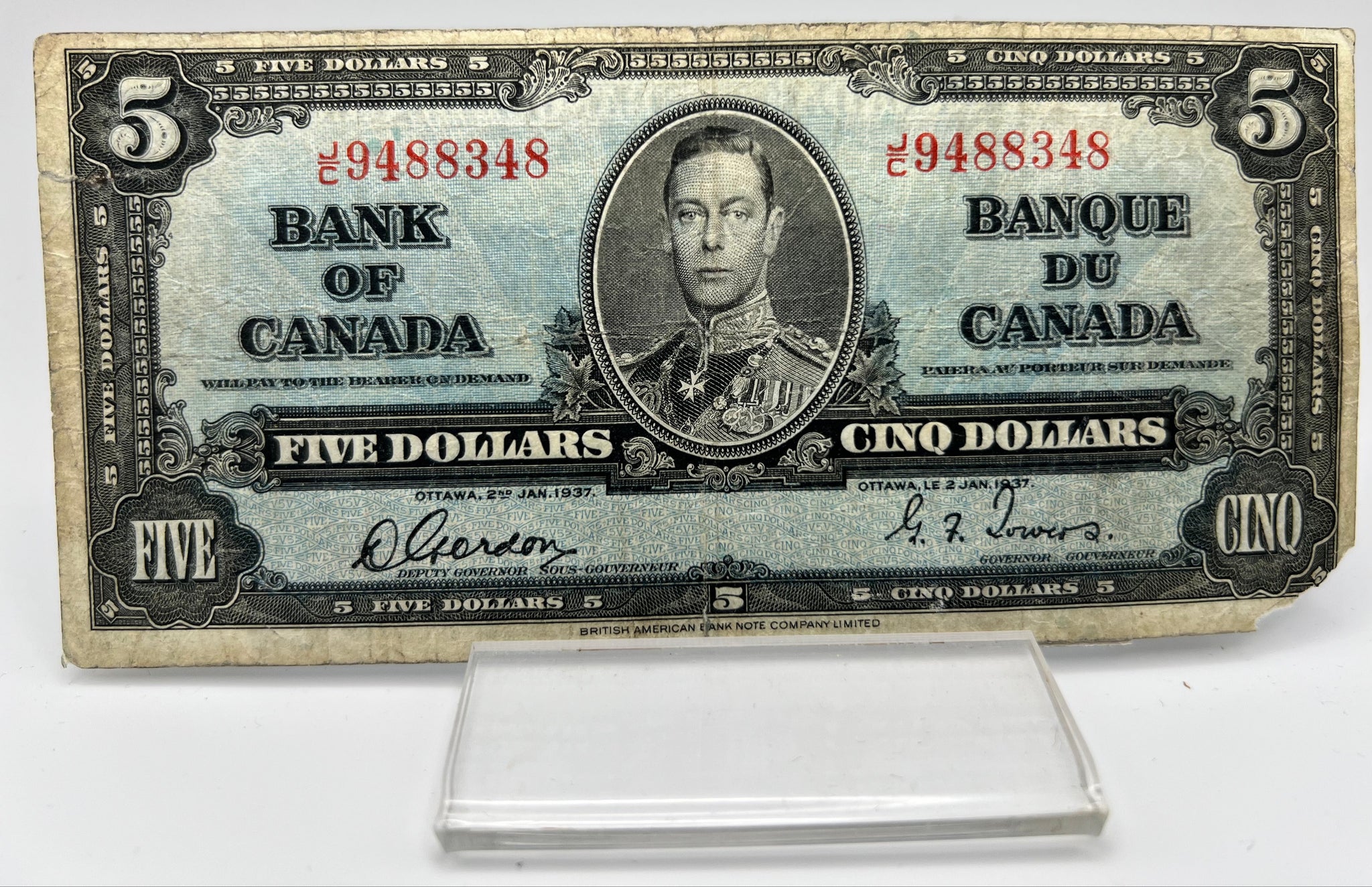 1937 Bank of canada BC-23b Five Dollars G-4 Gordon Towers, Serial-JC 9488348