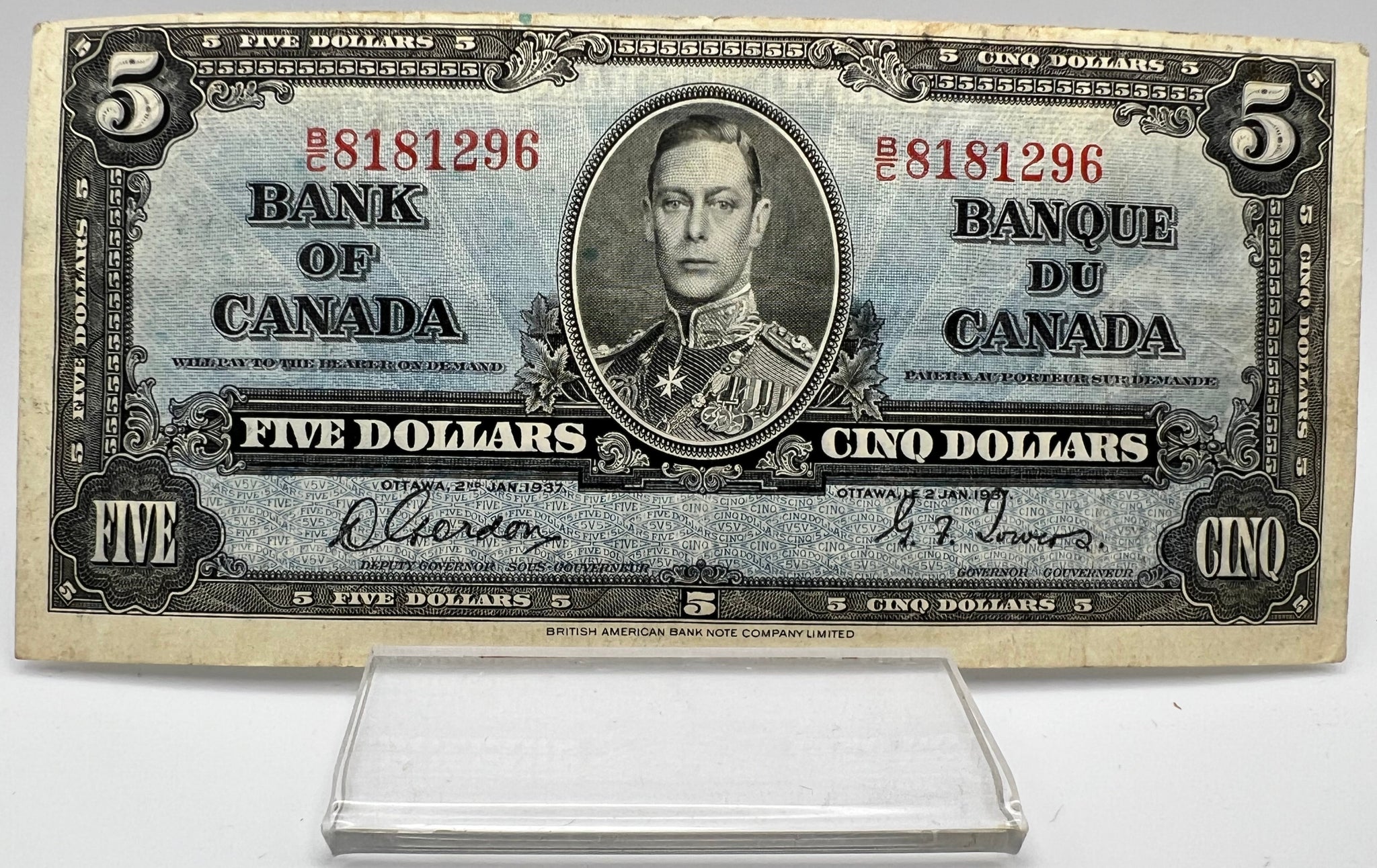 1937 Bank of canada BC-23b Five Dollars VF-20 Gordon Towers, Serial-BC 8181296