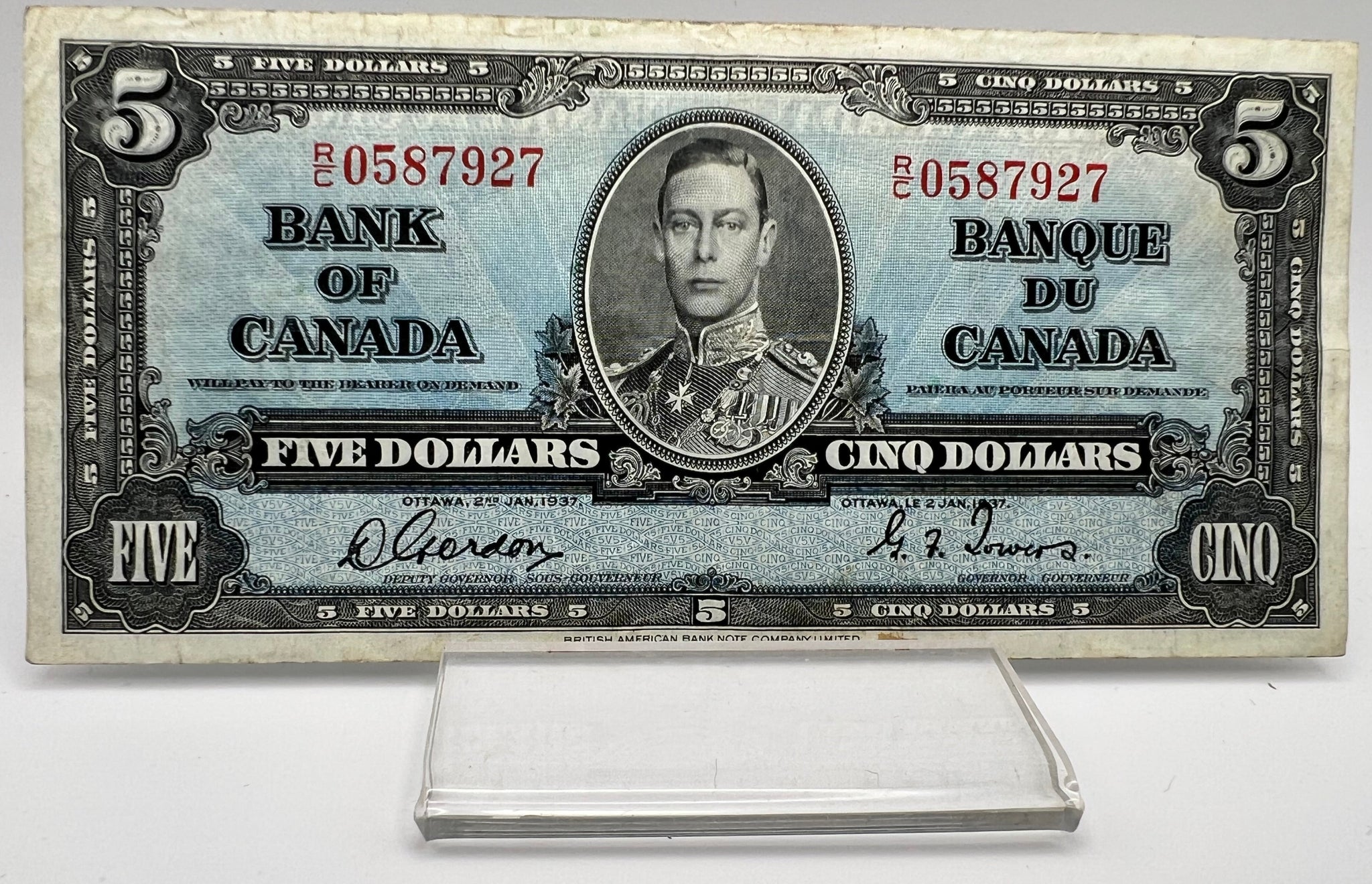 1937 Bank of canada BC-23b Five Dollars VF-20 Gordon Towers, Serial-RC 0587927