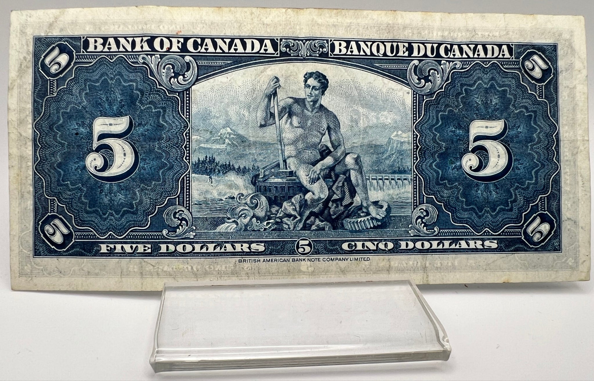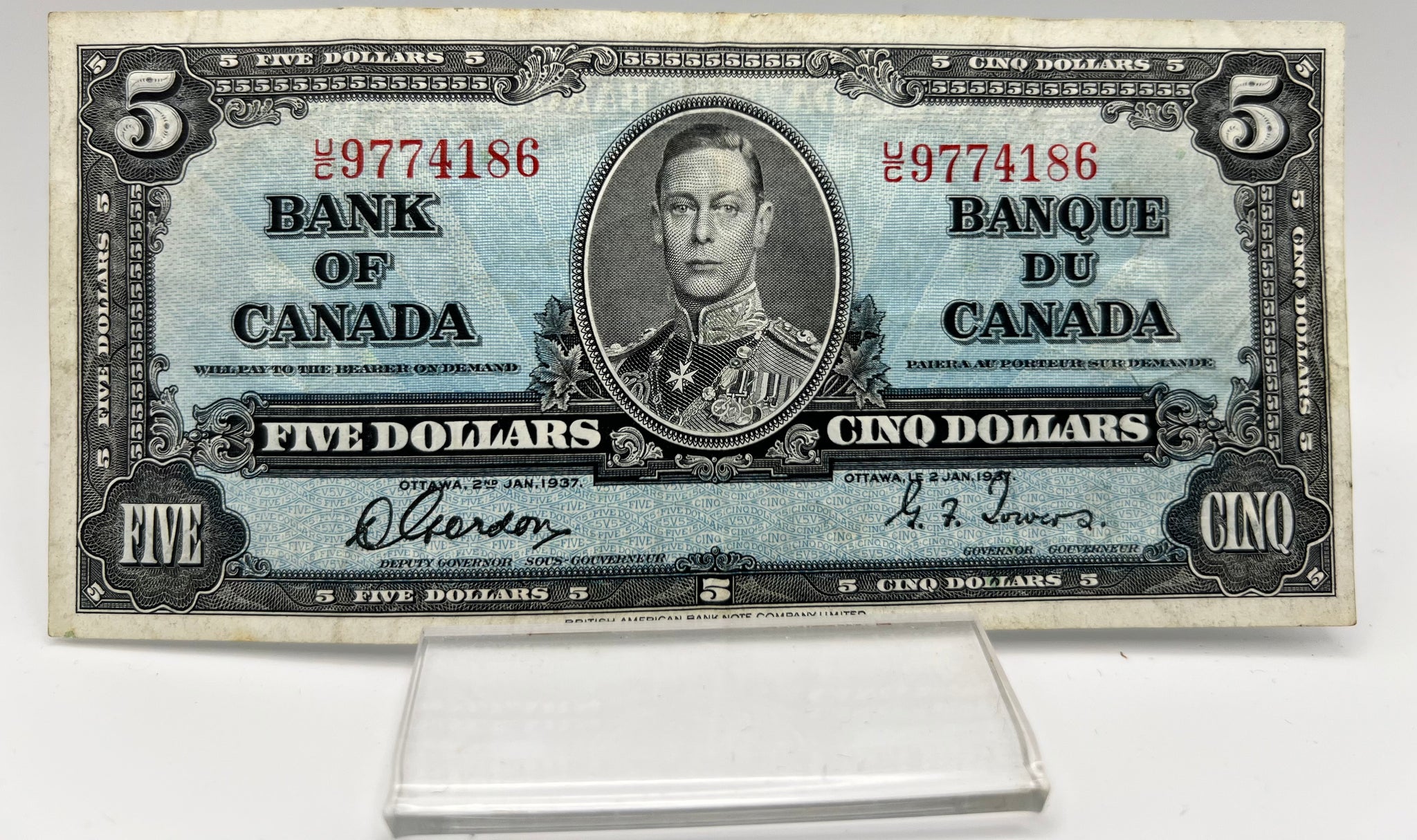 1937 Bank of canada BC-23b Five Dollars VF-30 Gordon Towers, Serial-UC 9774186