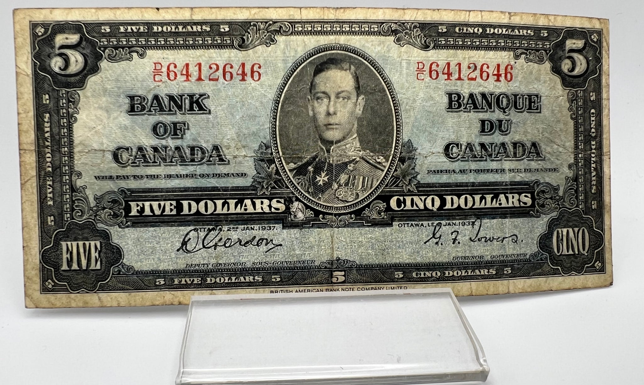 1937 Bank of canada BC-23b Five Dollars VG-8 Gordon Towers, Serial-DC 6412646