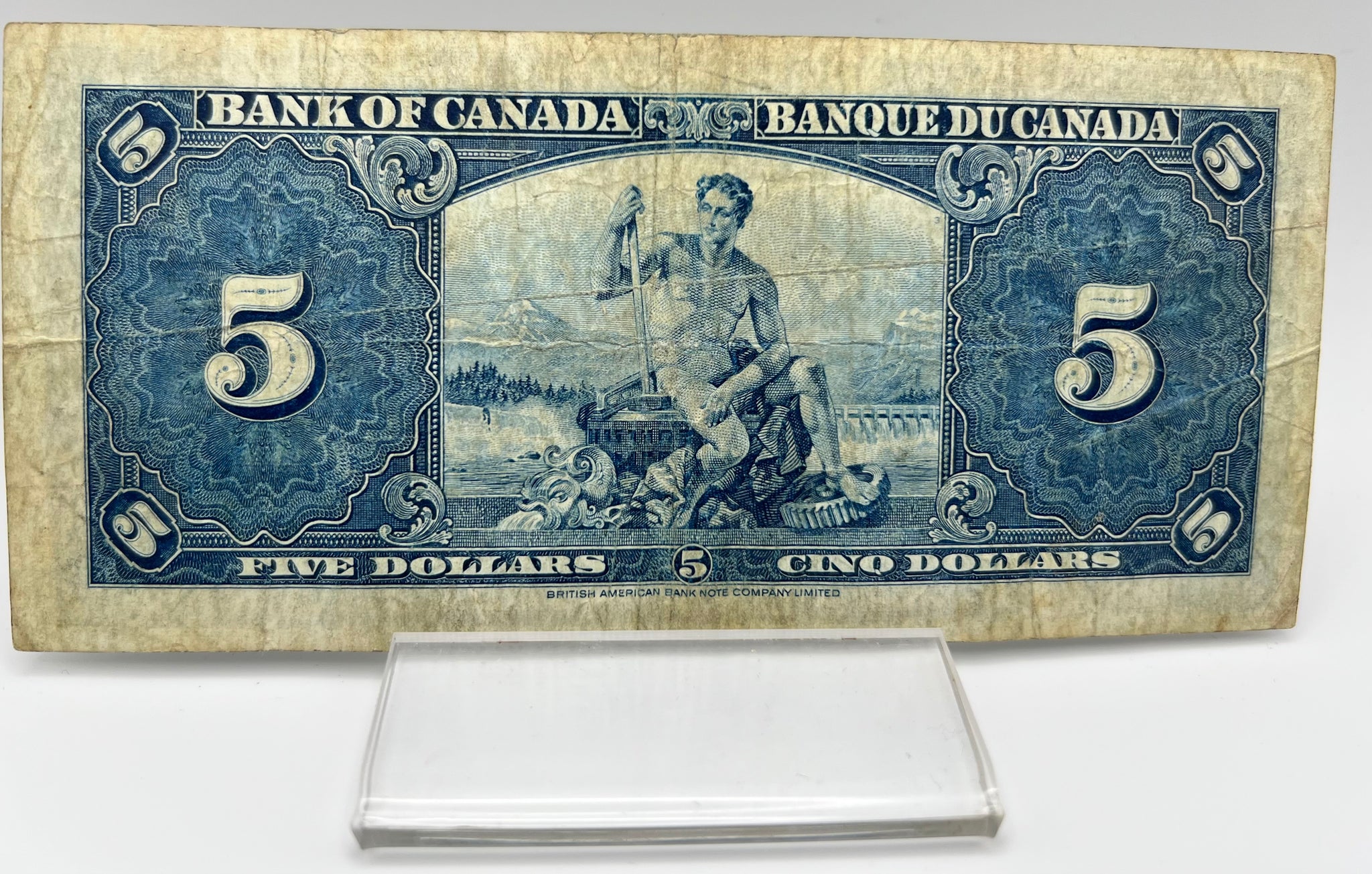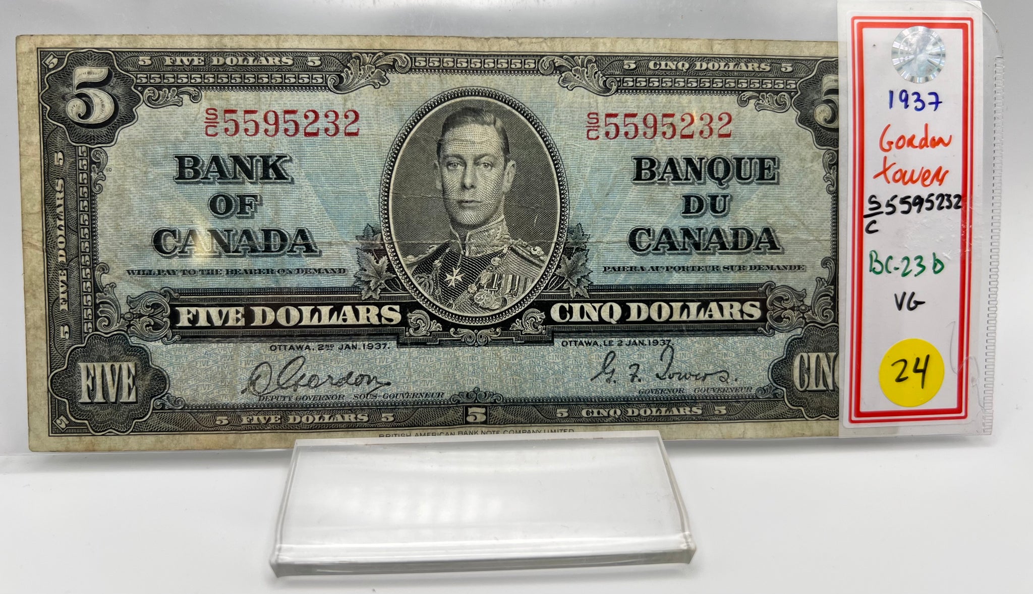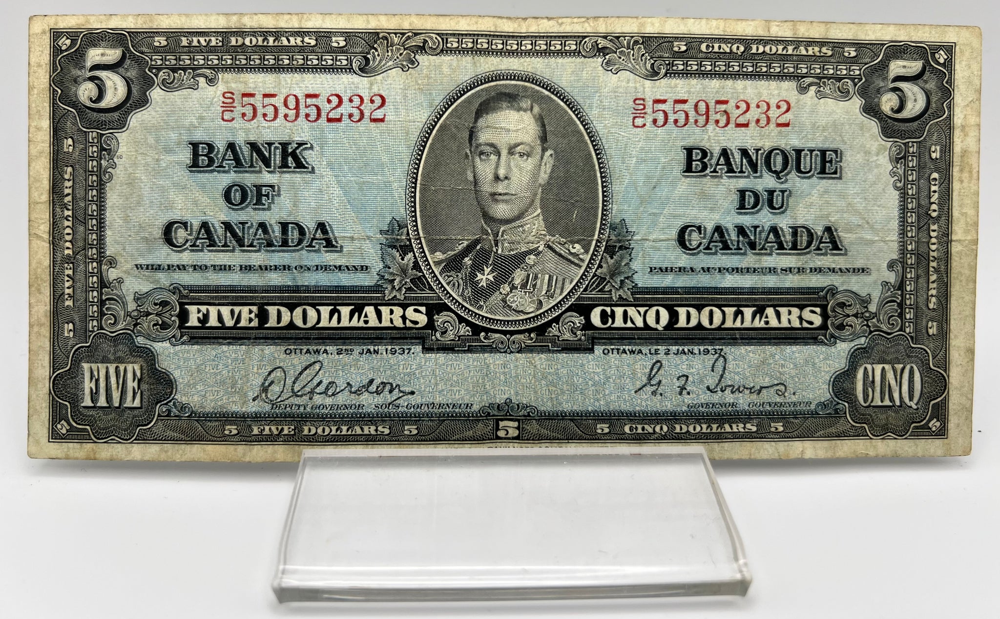 1937 Bank of canada BC-23b Five Dollars VG-8 Gordon Towers, Serial-SC 5595232