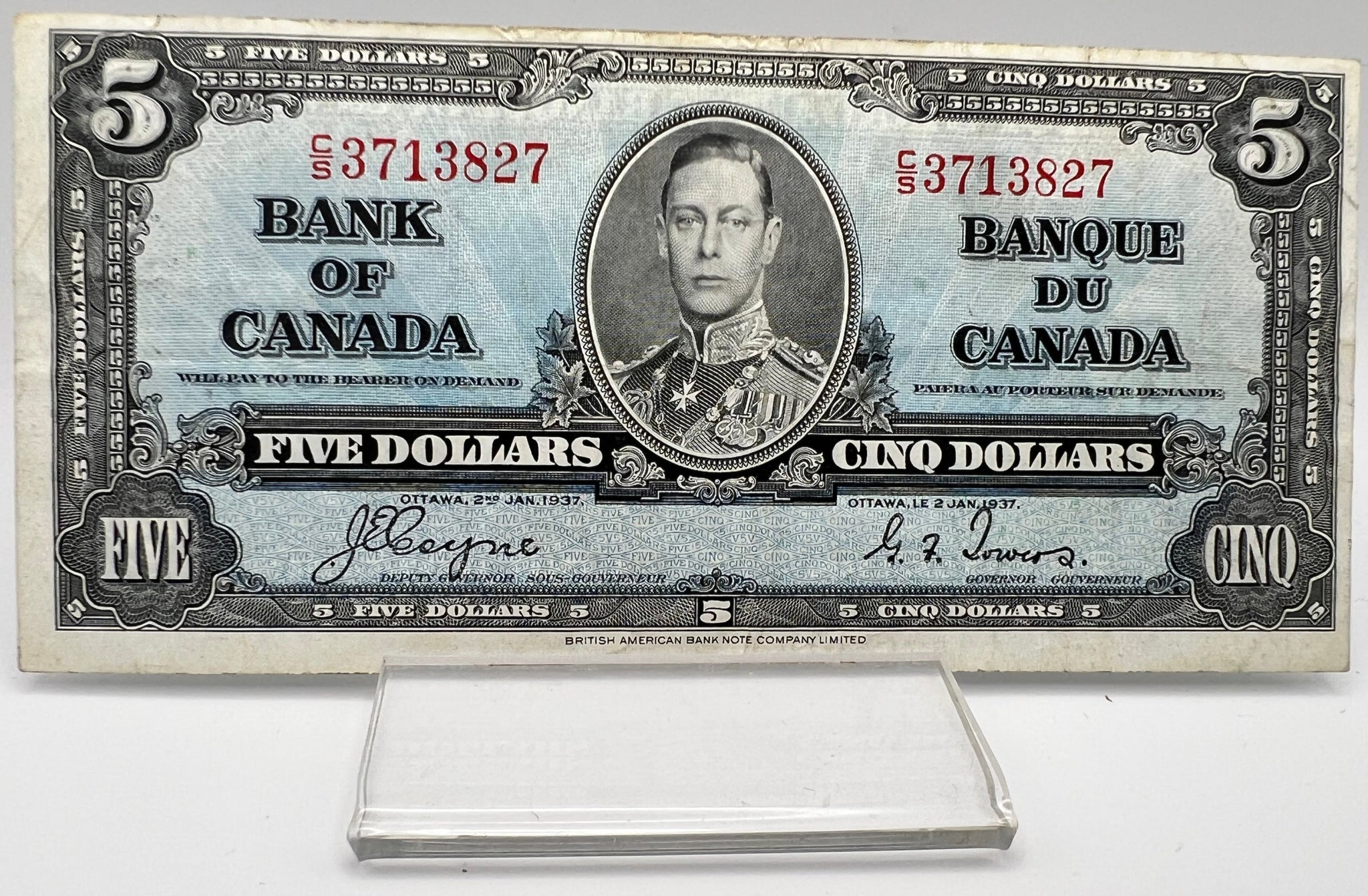 1937 Bank of canada BC-23c Five Dollars VF-20 Coyne Towers, Serial-CS 3713827