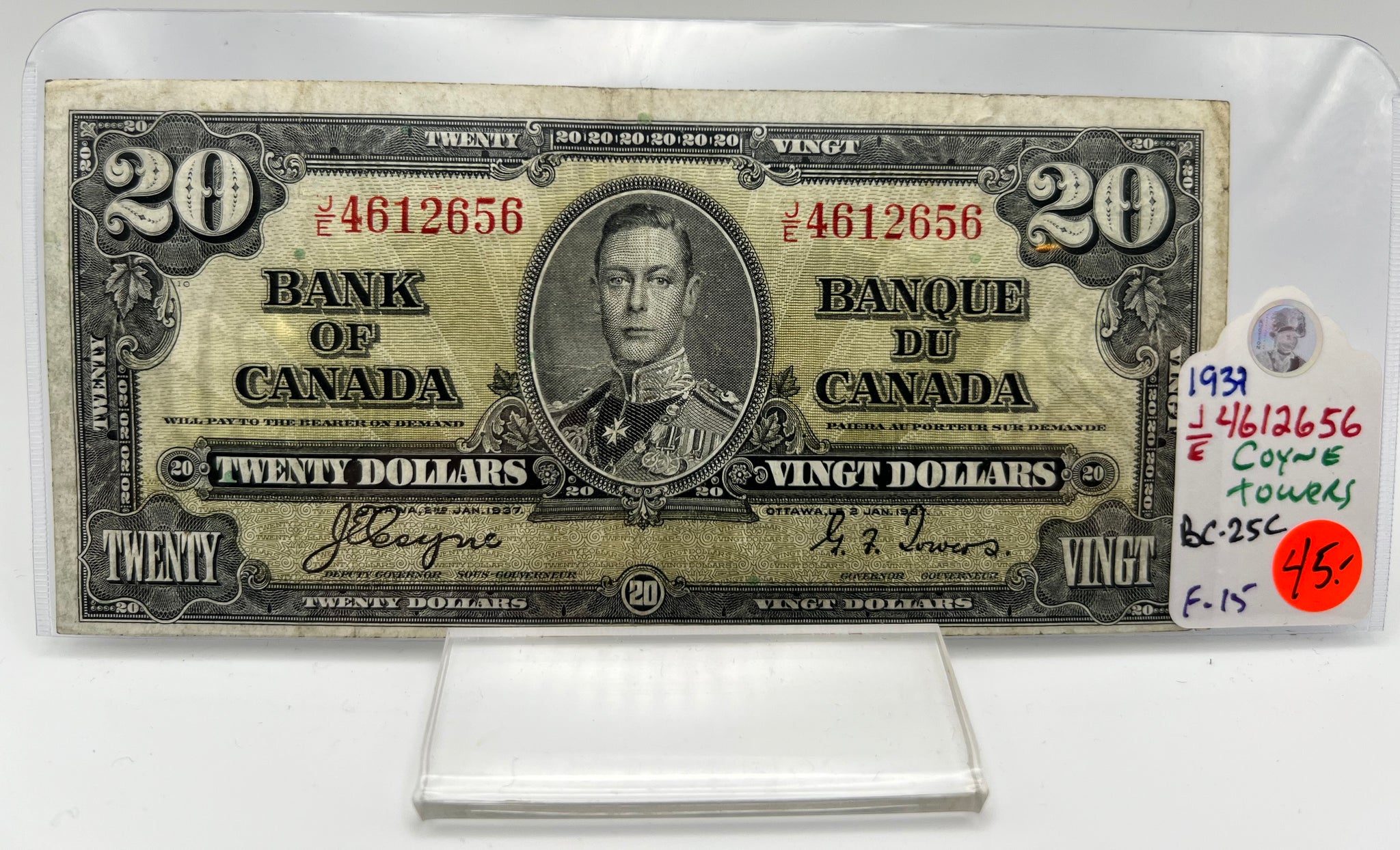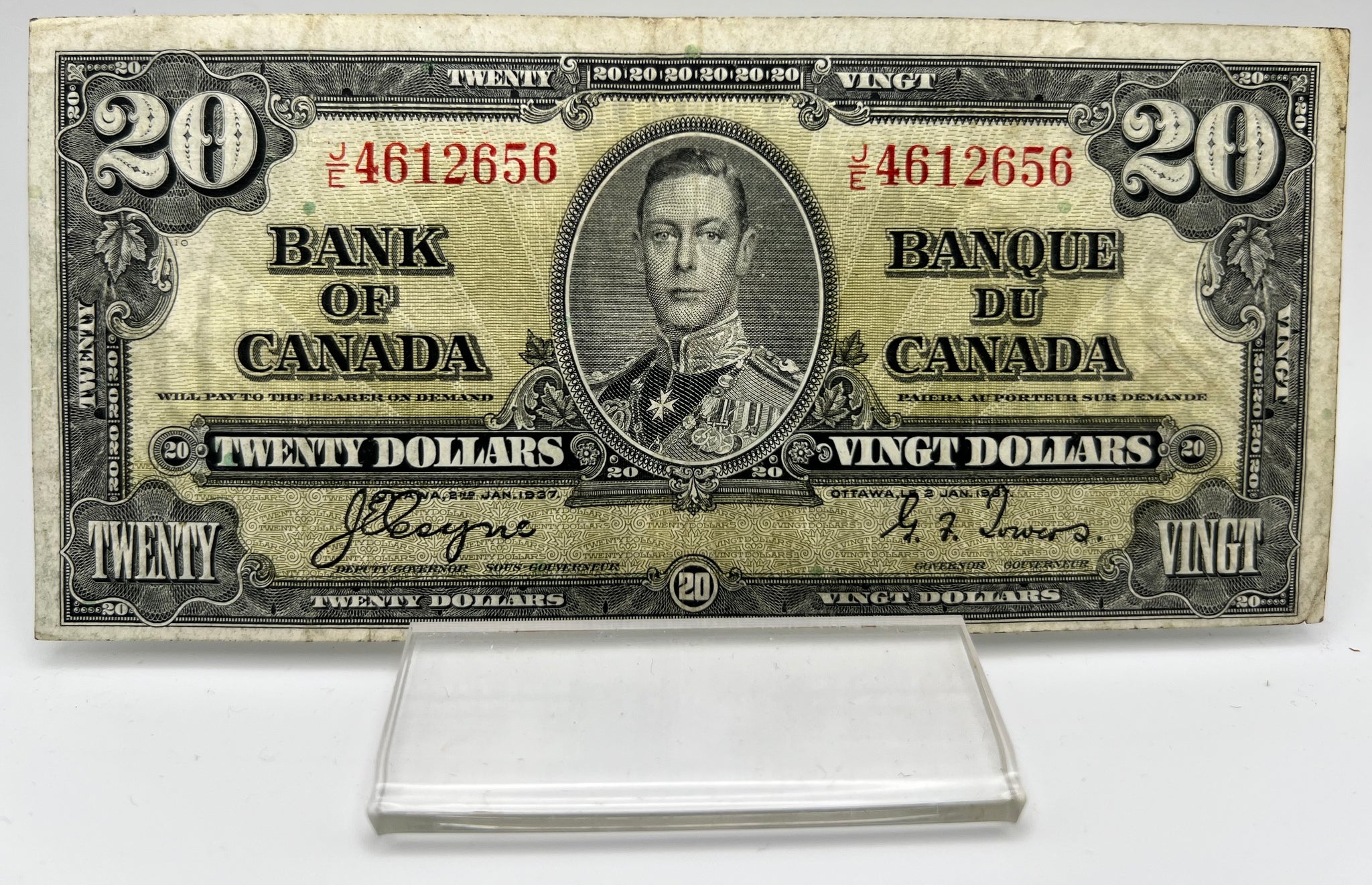1937 Bank of canada BC-25c Twenty Dollars F-15 Coyne Towers, Serial-JE 4612656