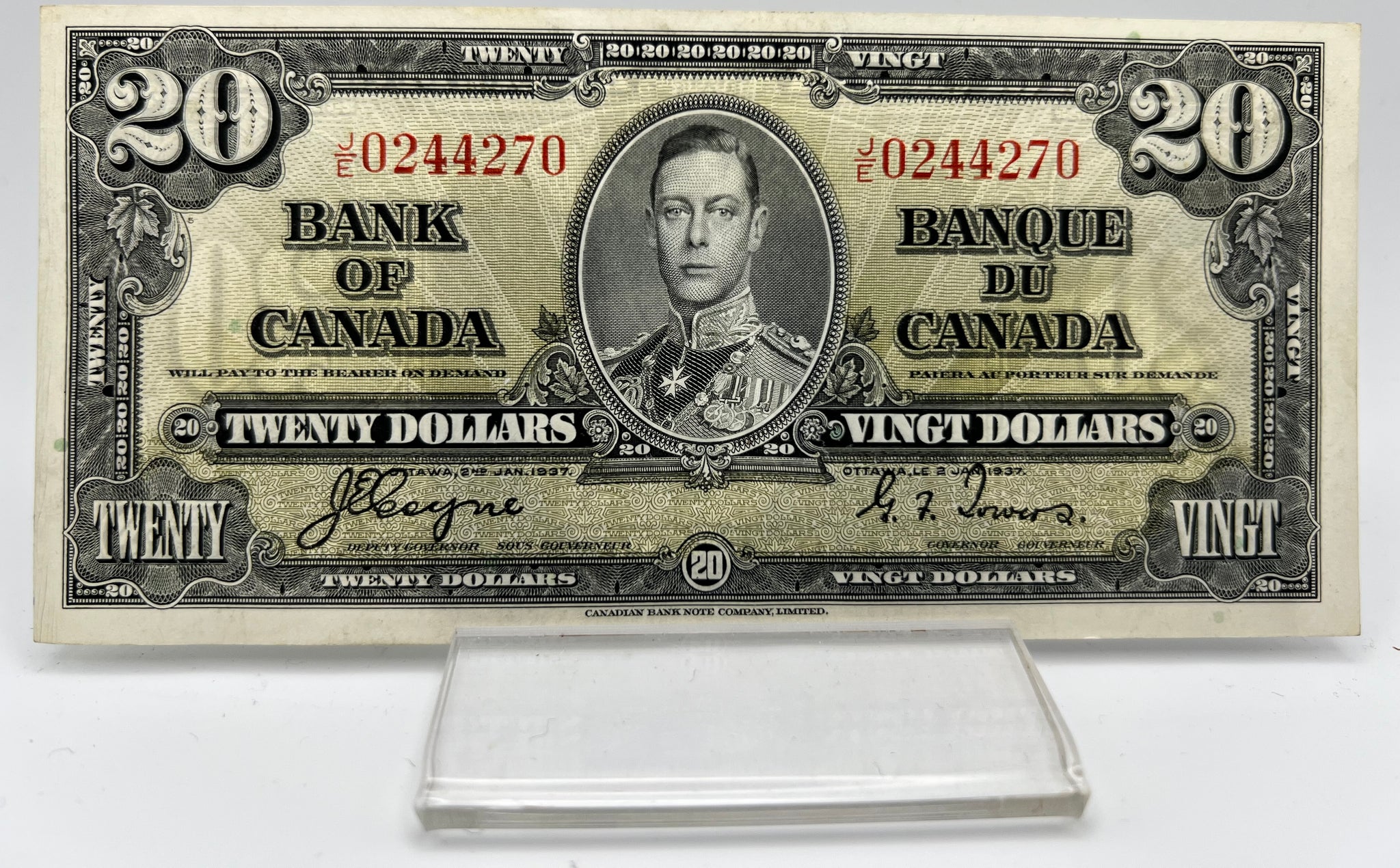1937 Bank of canada BC-25c Twenty Dollars UNC Coyne Towers, Serial-JE 0244270