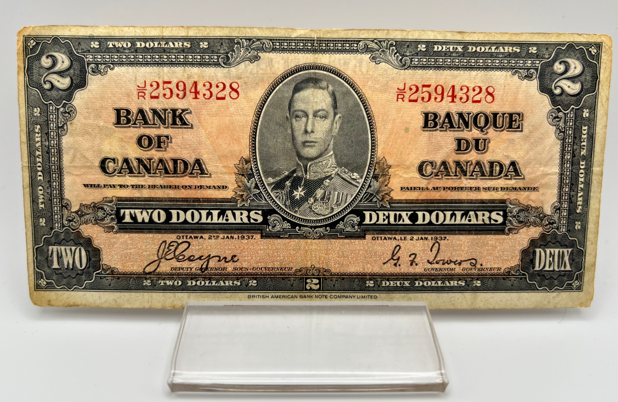 1937 Bank of Canada Two Dollars F-12 Serial-JR 2594328
