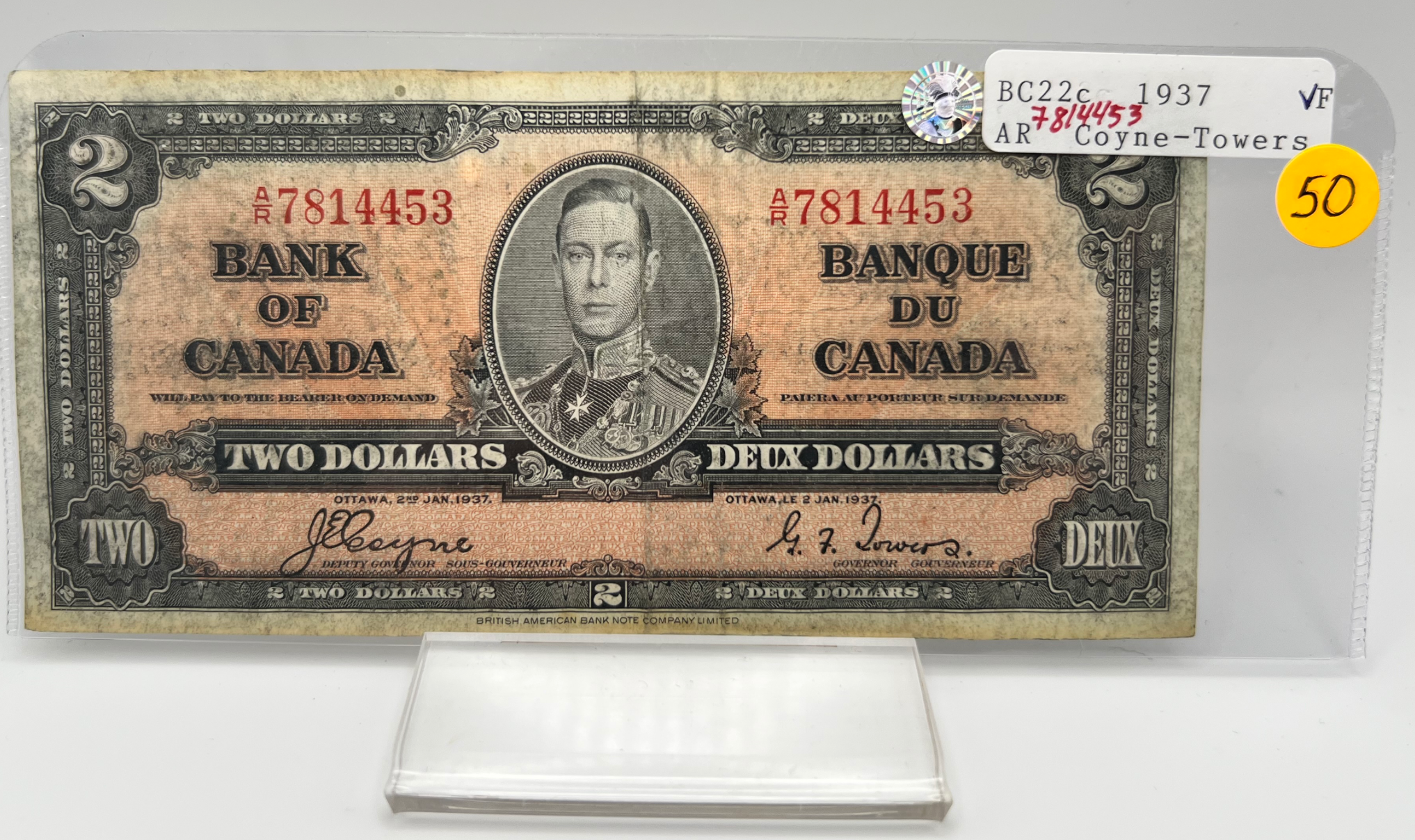 1937 Bank of Canada Two Dollars VF-20 Serial-AR 7814453