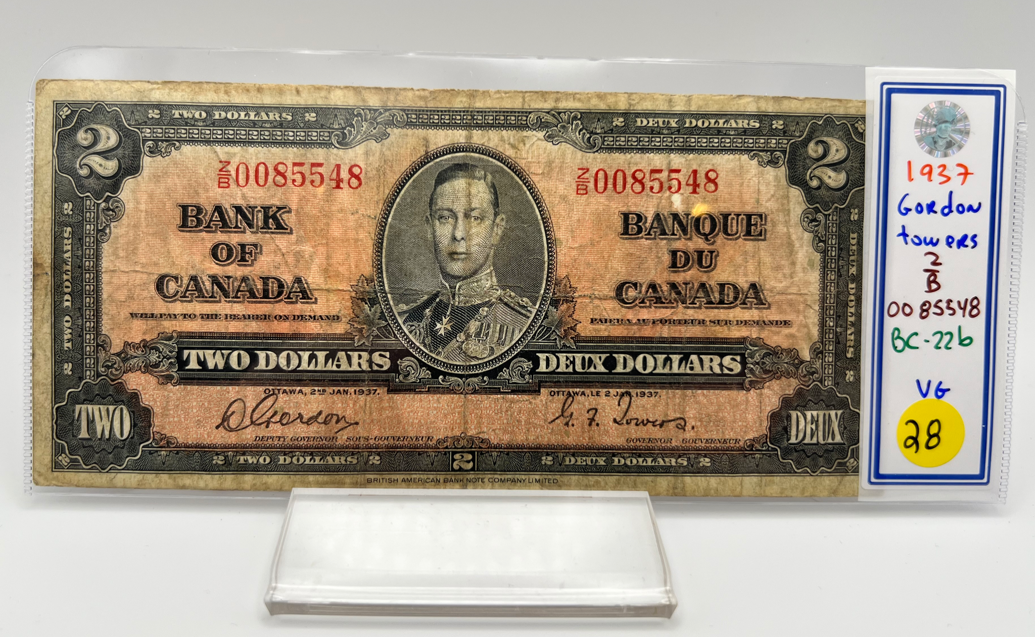 1937 Bank of Canada Two Dollars VG-8 Serial-ZB 0085548