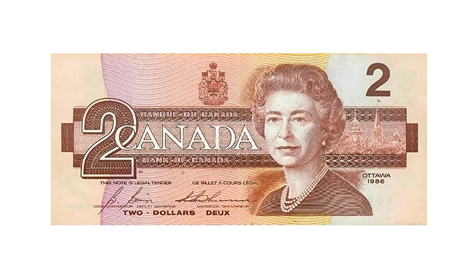 - INCLUDES A REPLACEMENT BRX $2 BANK NOTE! Sealed in a capsule, the uncirculated $2 bill is a colourful piece of the past. It was part of the 1986 Birds of Canada series issued by the Bank of Canada and represents the last of the $2 bank notes that circulated in Canada until 1996.