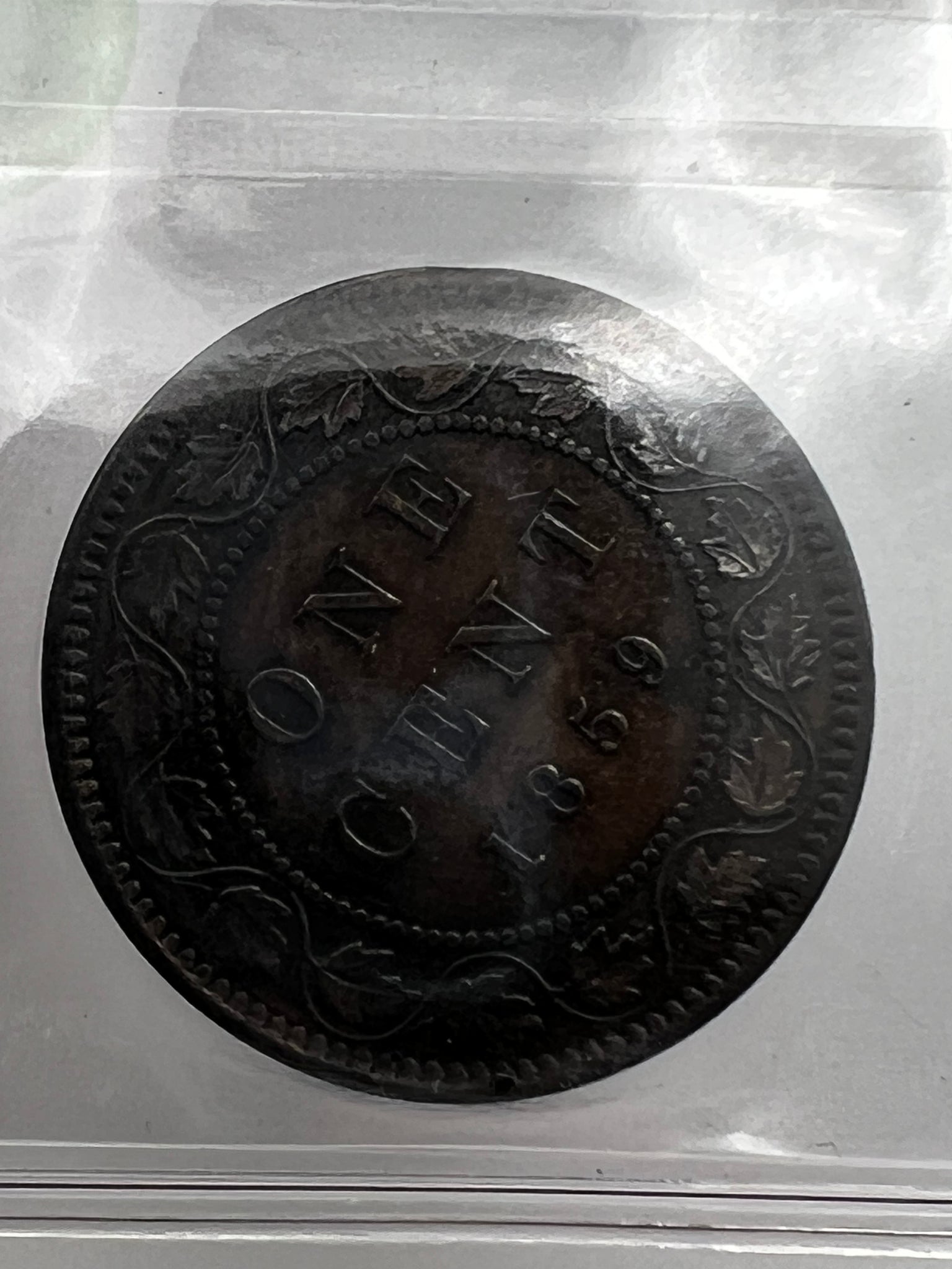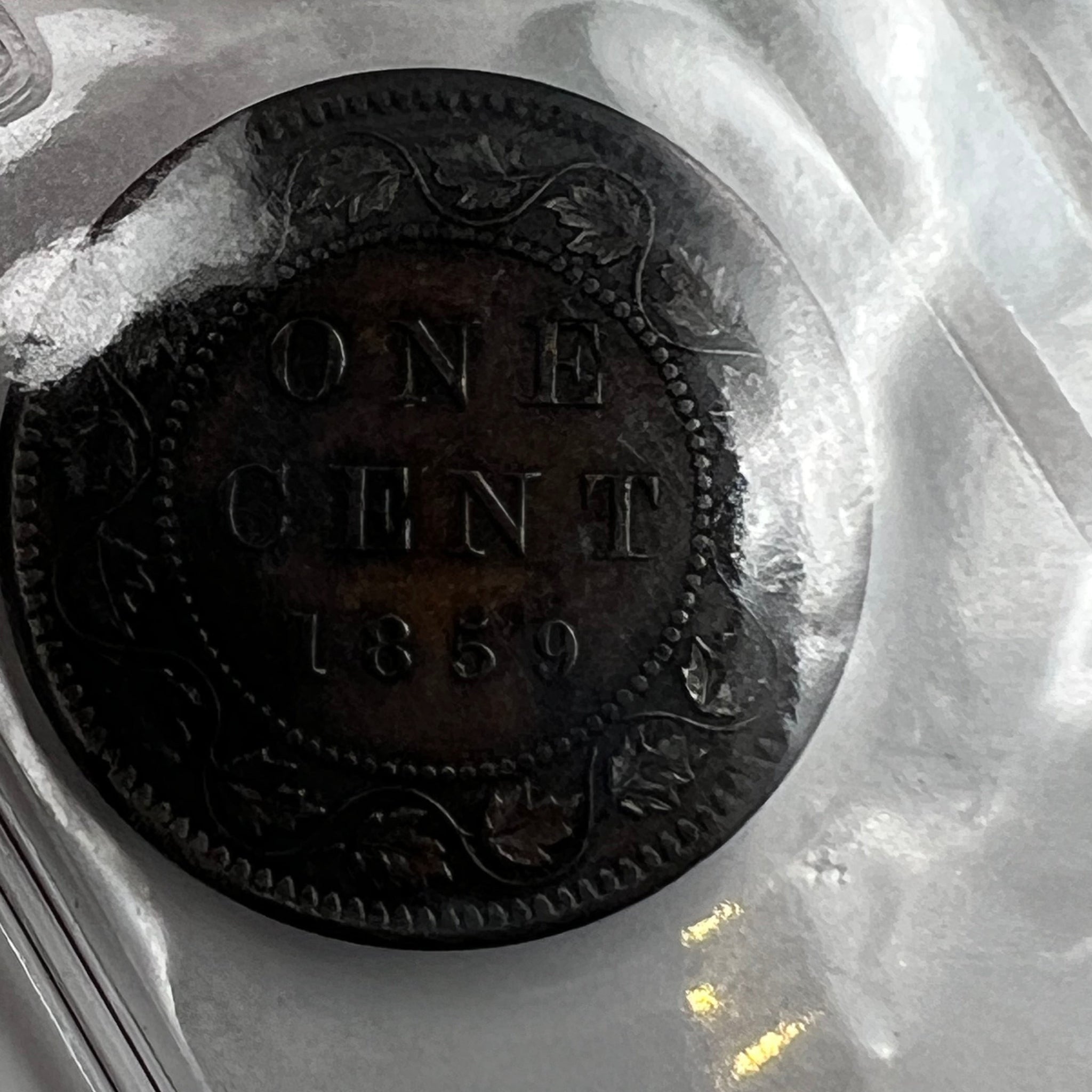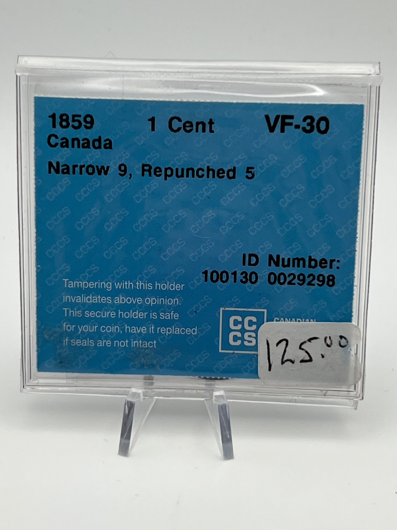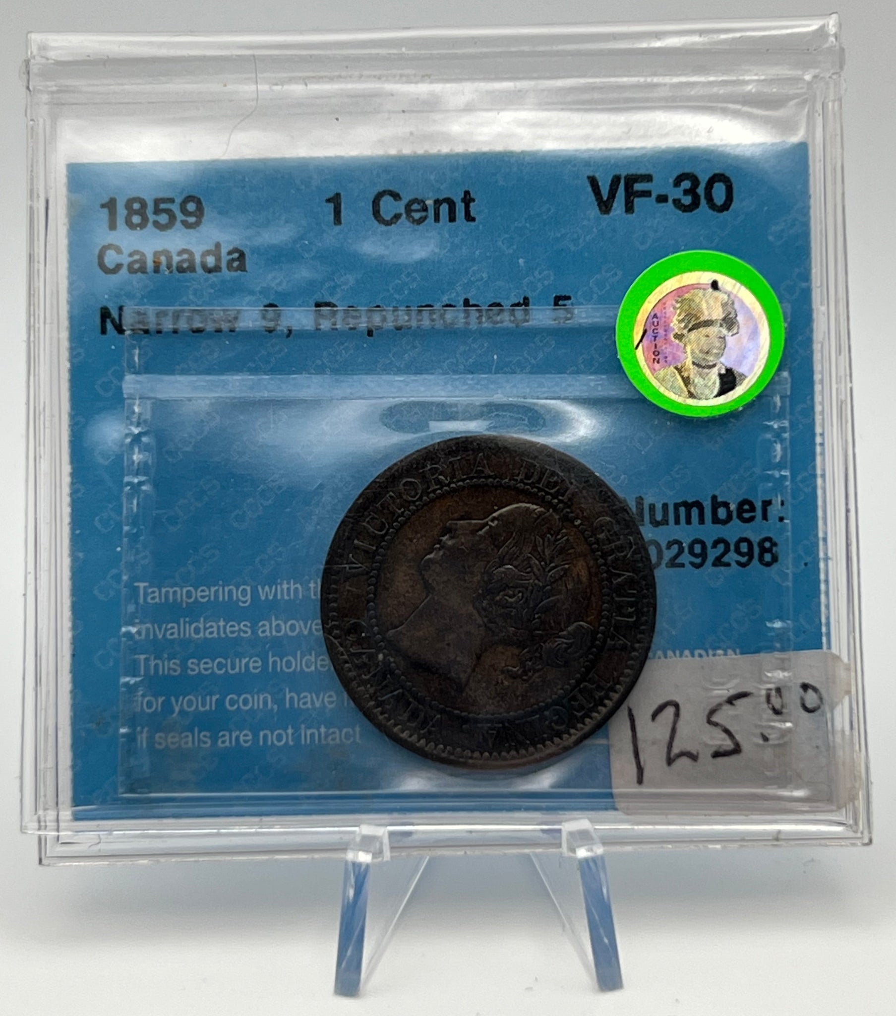 CANADA ONE CENT 1859 CCCS VF-30 Narrow 9 Repunched 5