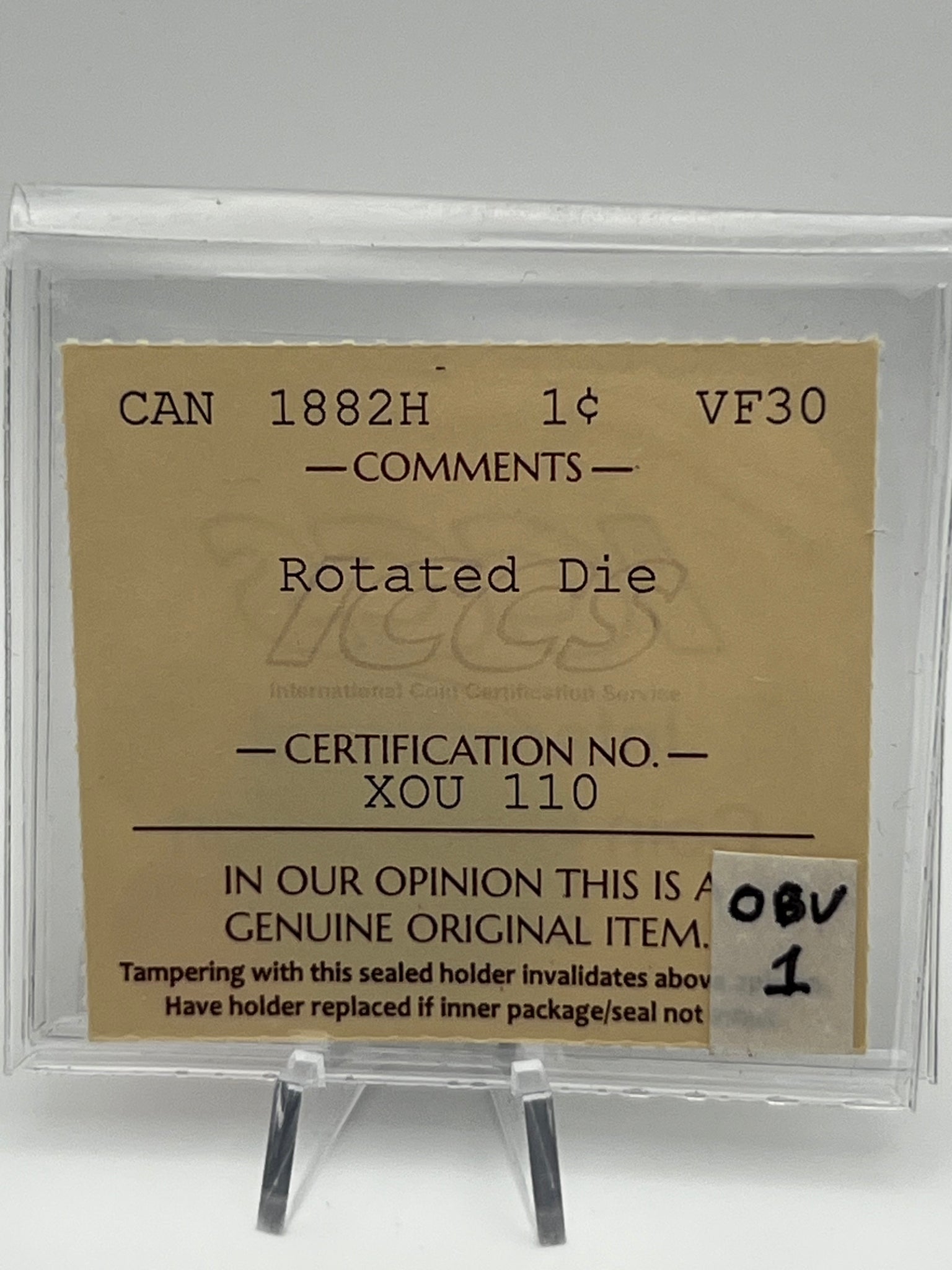 CANADA ONE CENT 1882 ICCS VF-30 Rotated Die OBV1