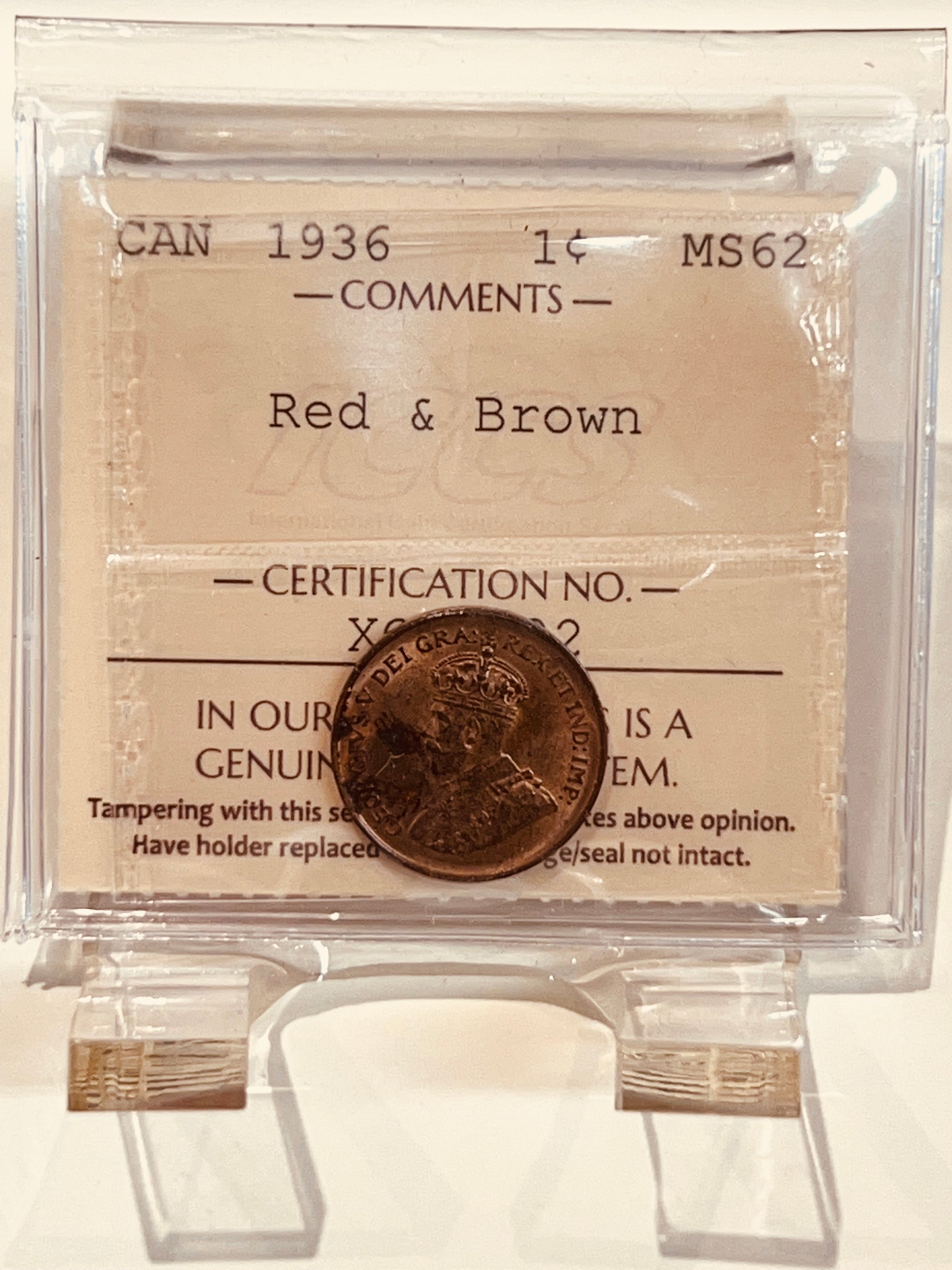 Canada One Cent 1936 MS-62 ICCS