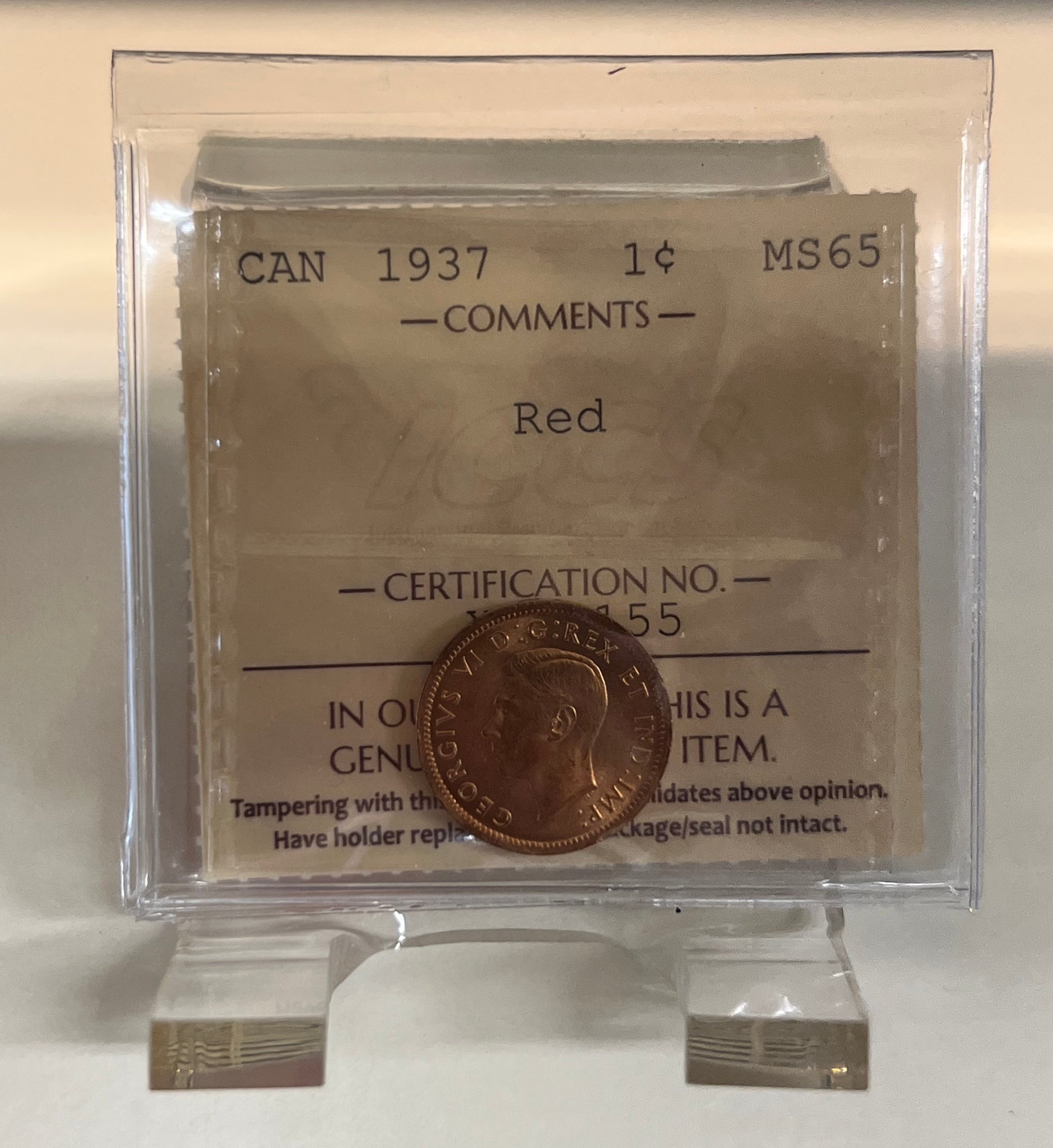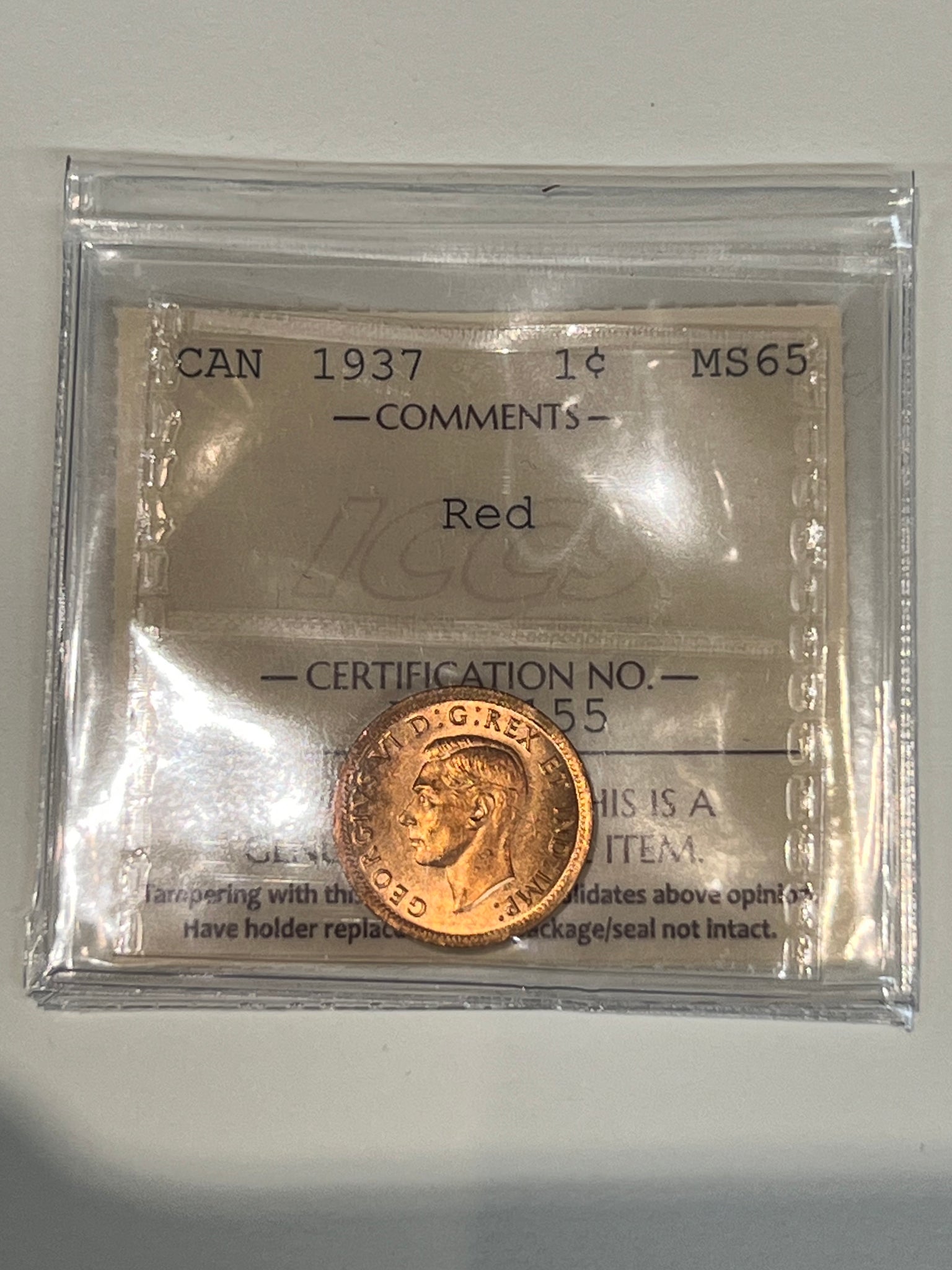 Canada One Cent 1937 MS-65 ICCS