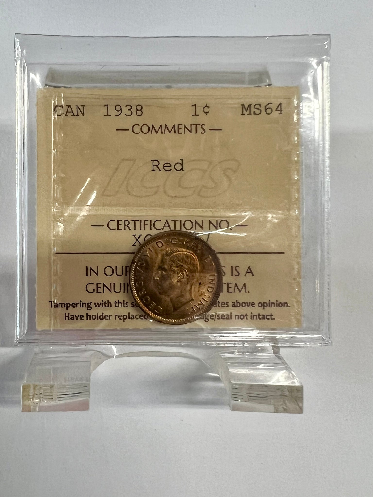 Canada One Cent 1938 MS-64 ICCS