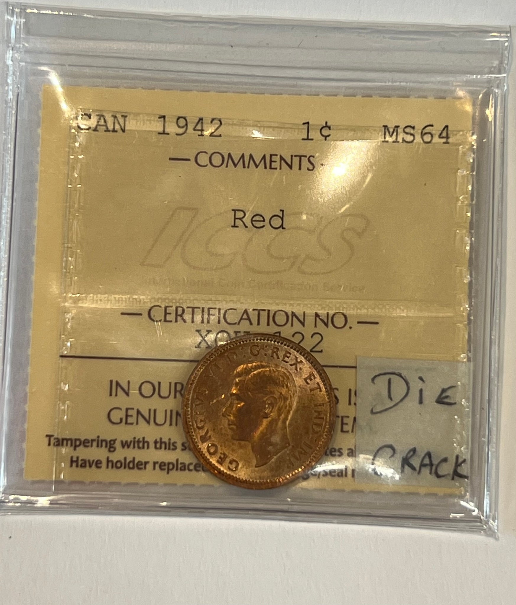 Canada One Cent 1942 MS-64 ICCS-Die Crack