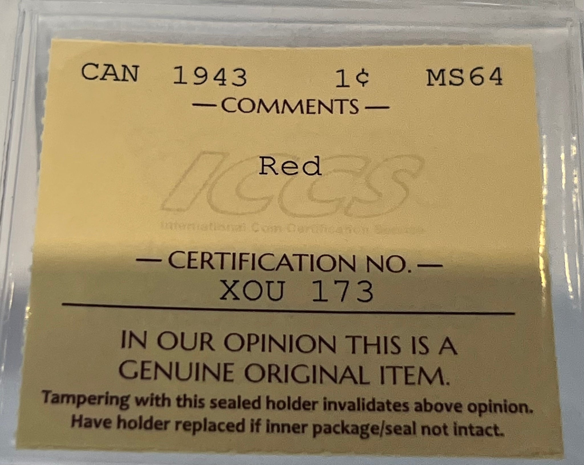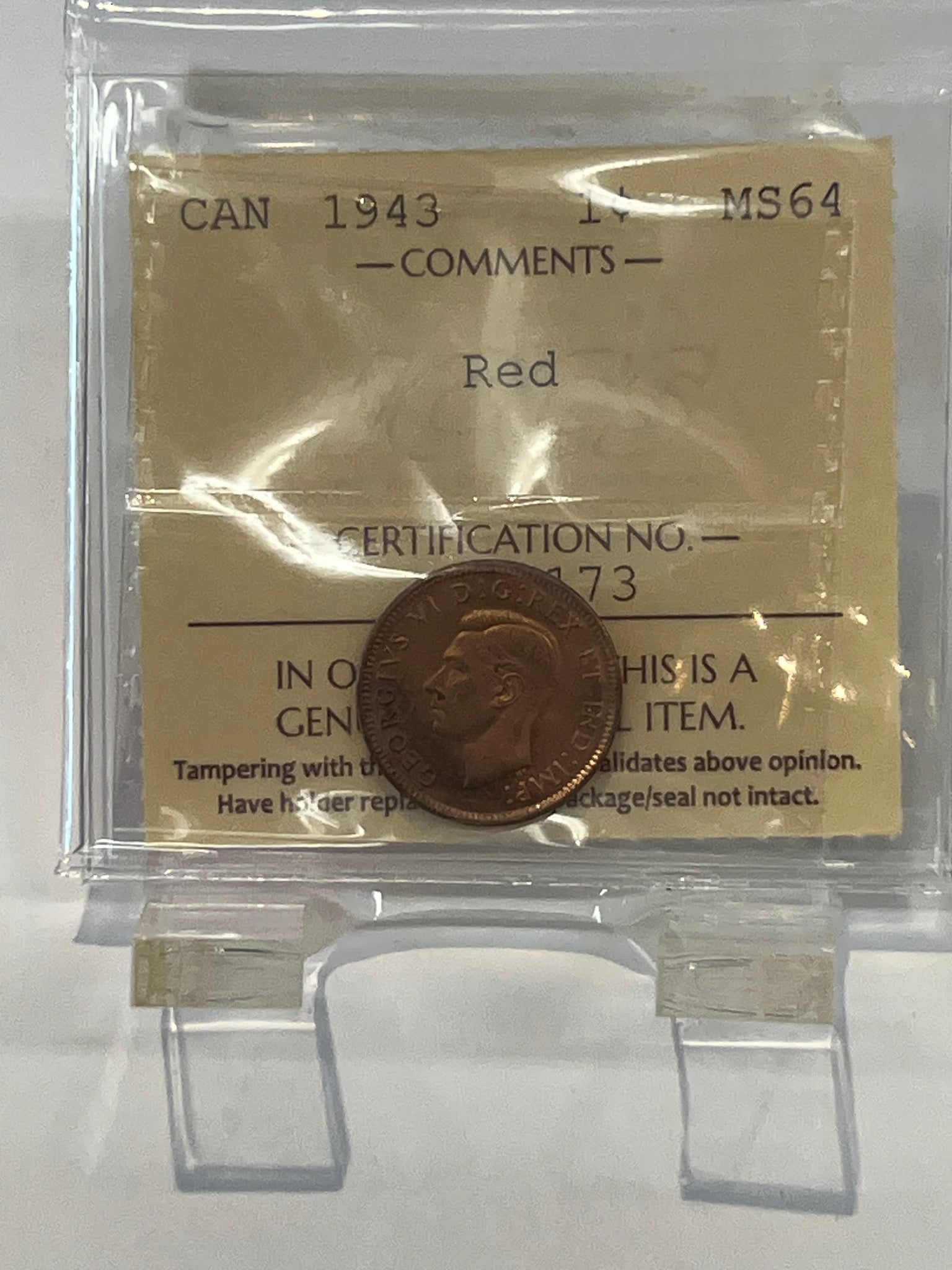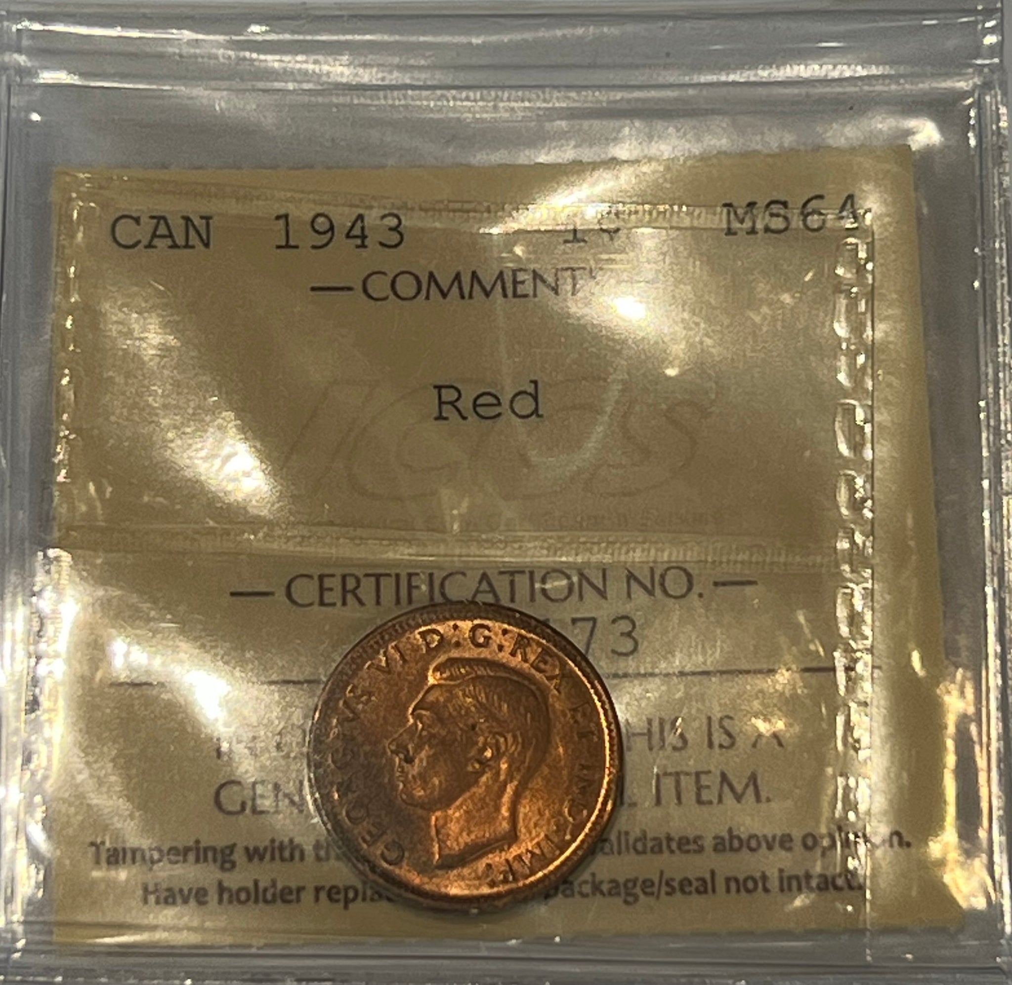Canada One Cent 1943 MS-64 ICCS