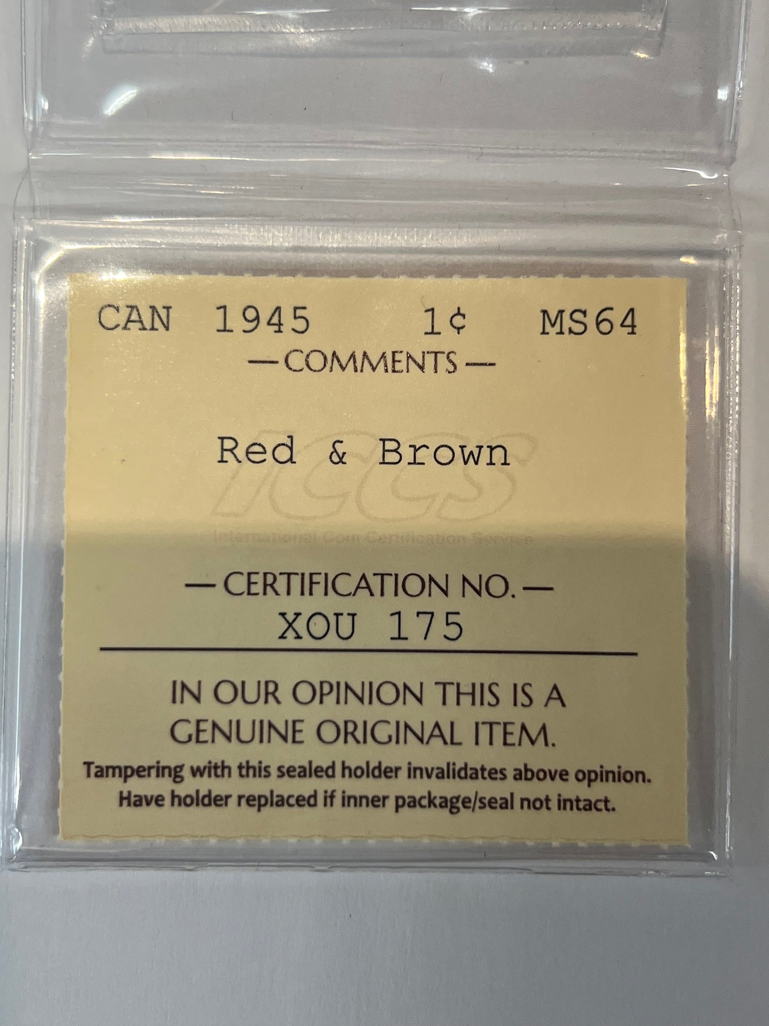 Canada One Cent 1945 MS-64 ICCS
