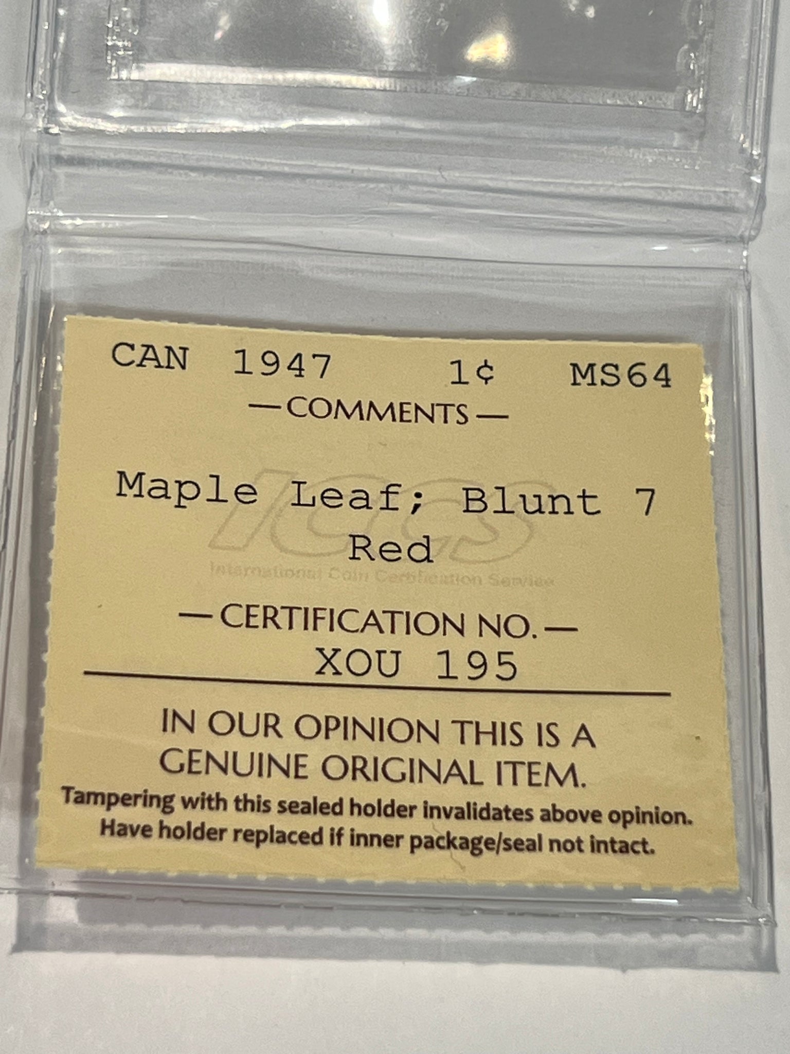 Canada One Cent 1947 Maple Leaf-Blunt 7 MS-64 ICCS