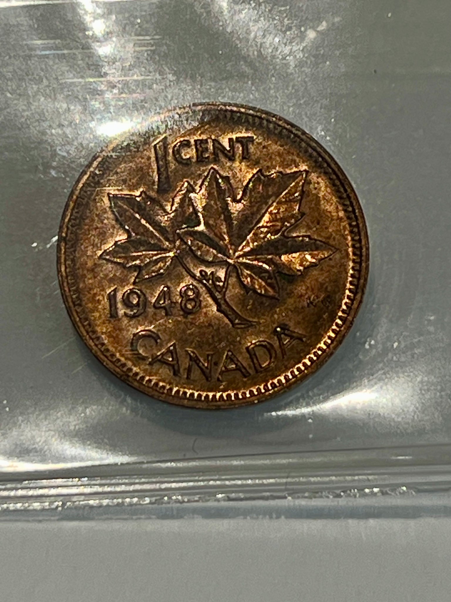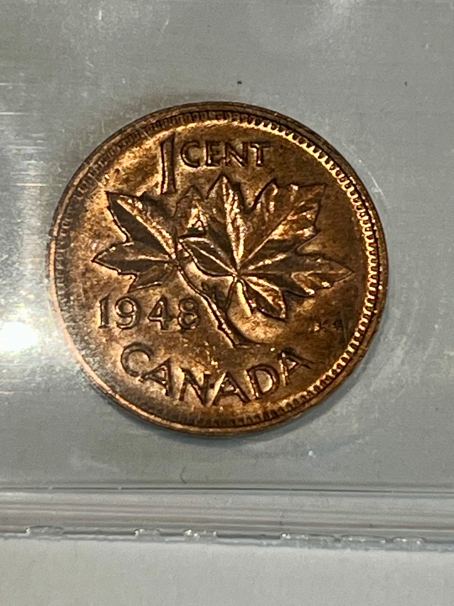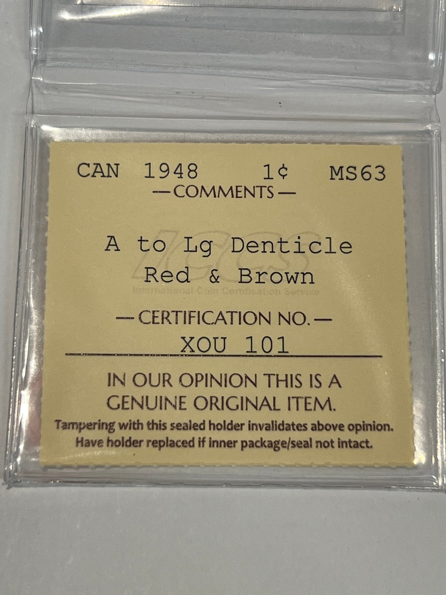 Canada One Cent 1948 A to LG Denticle MS-63 ICCS