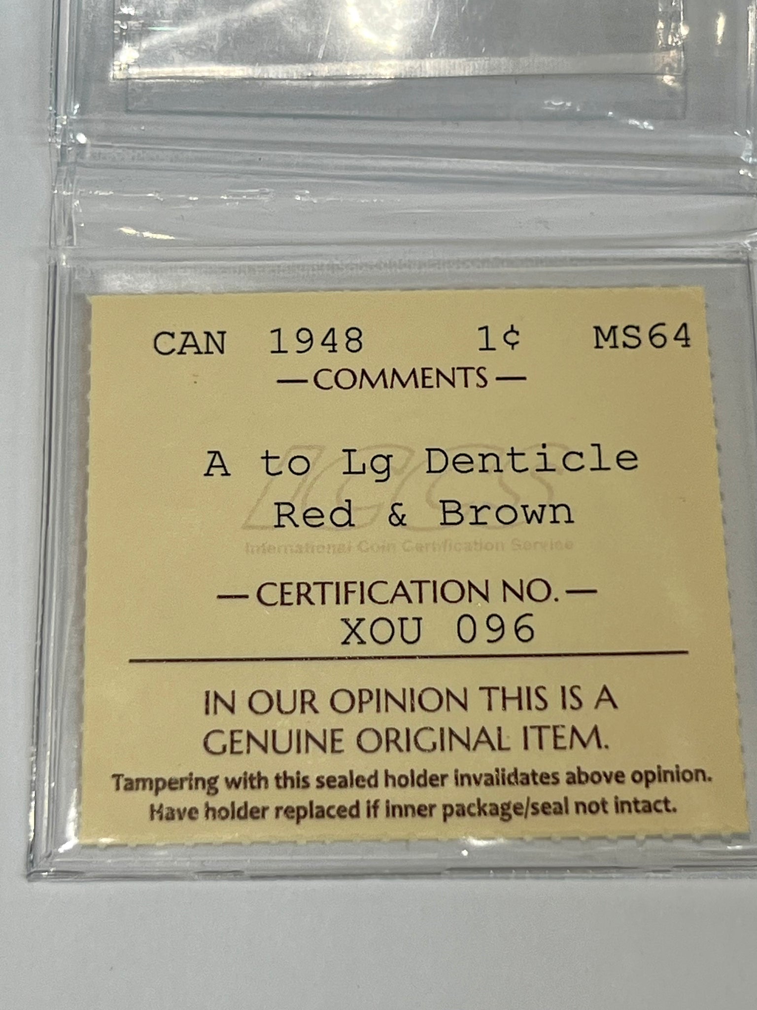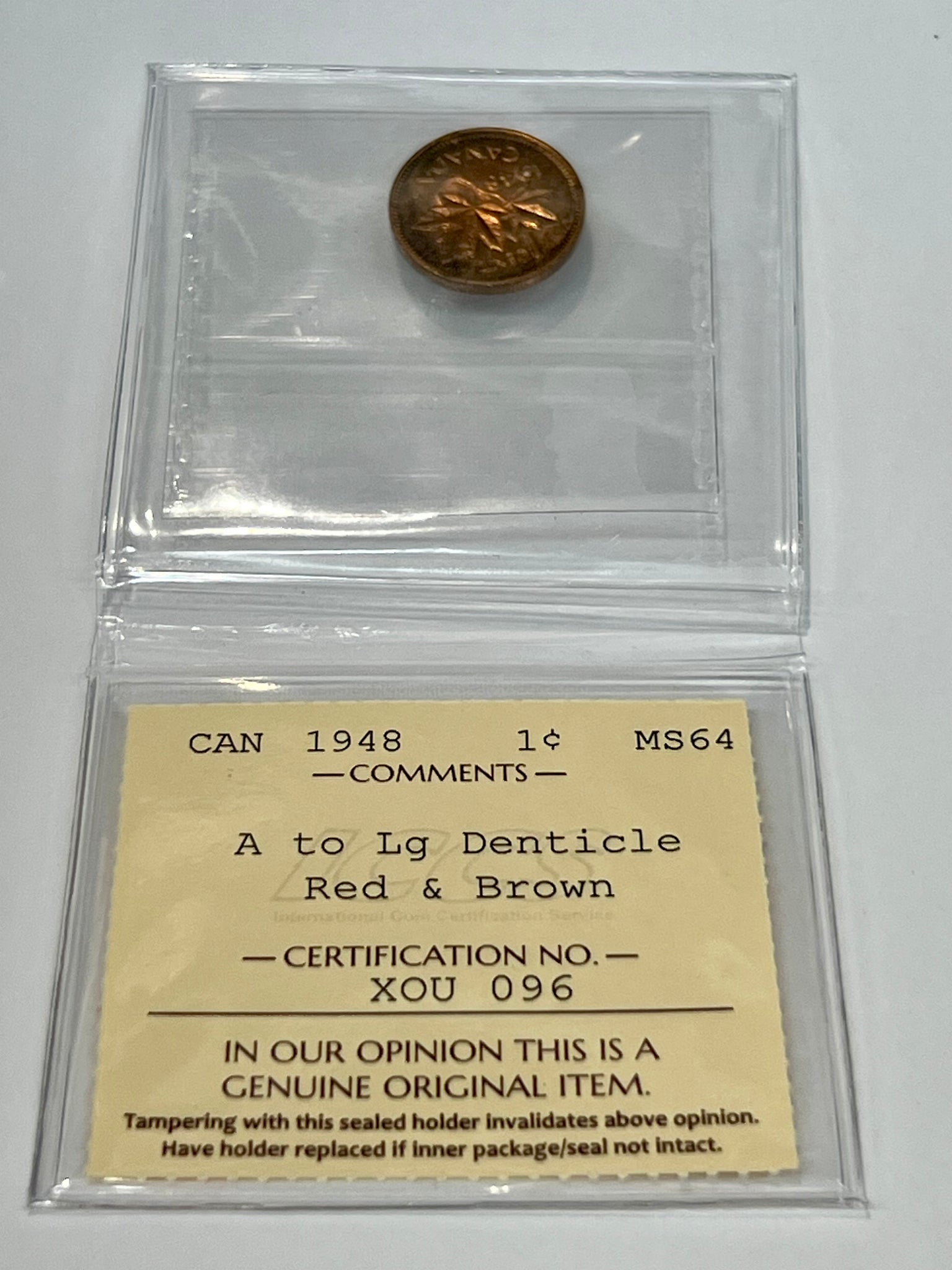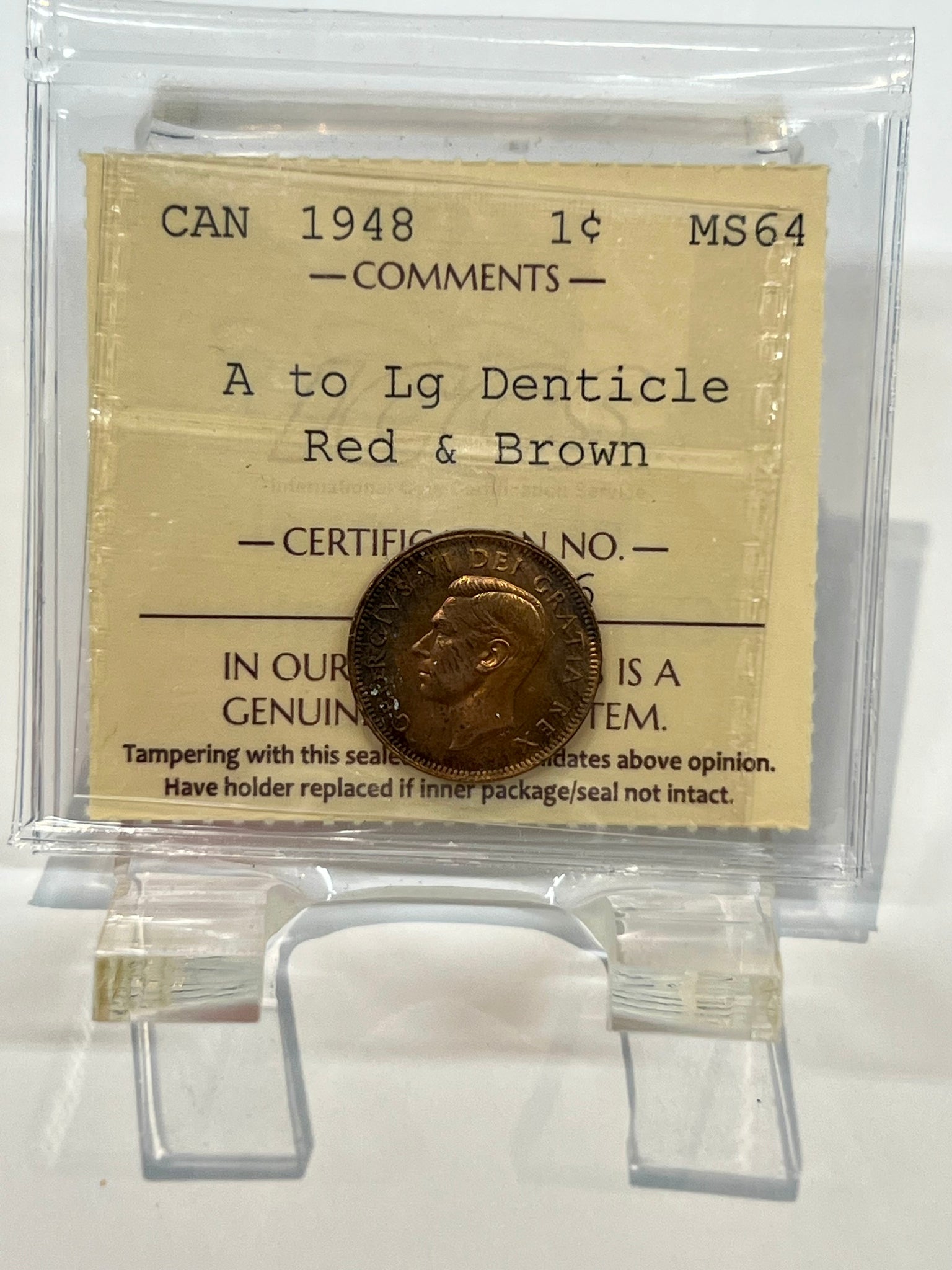 Canada One Cent 1948 A to LG Denticle MS-64 ICCS