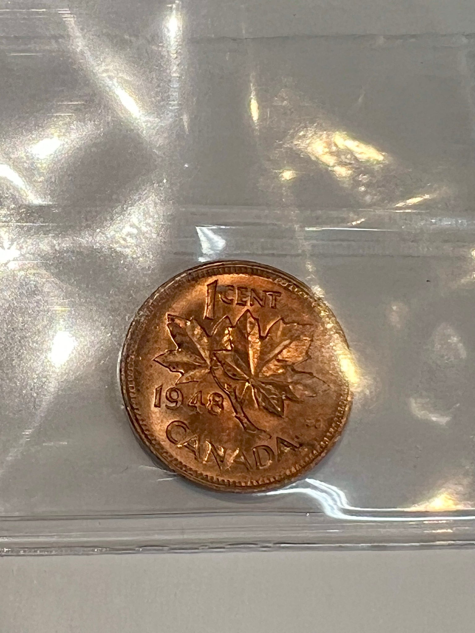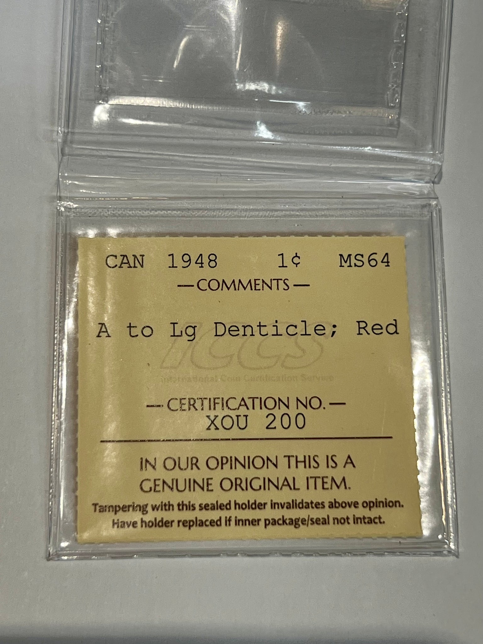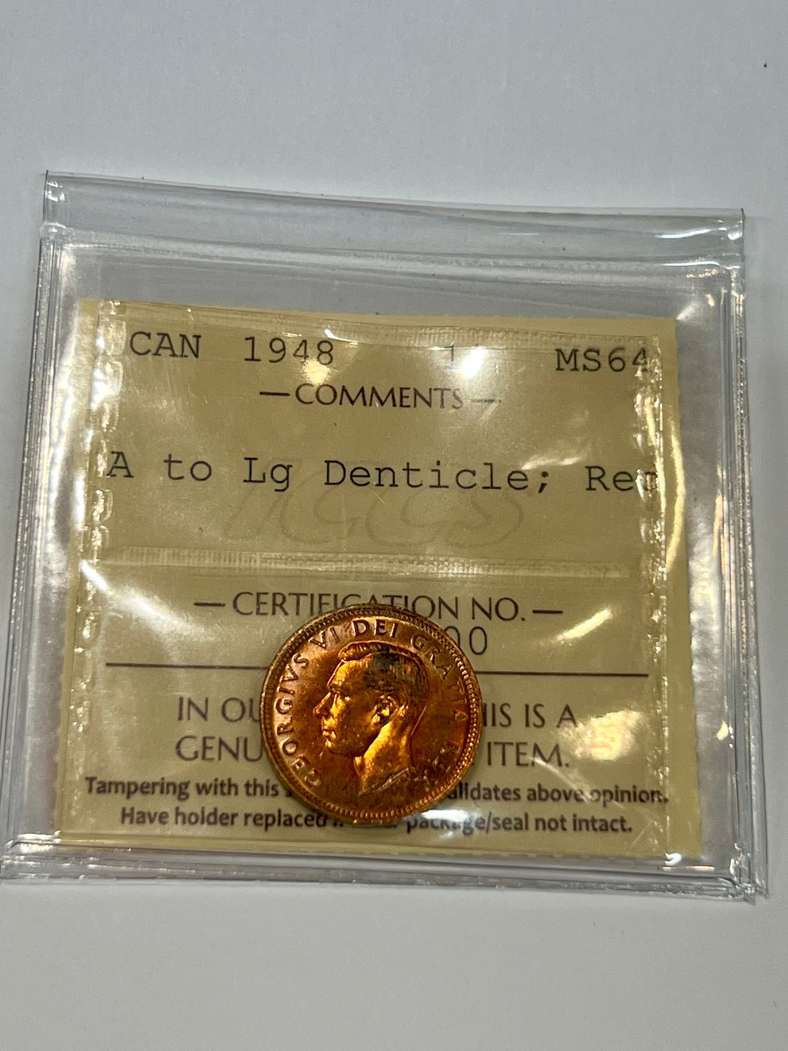 Canada One Cent 1948 A to LG Denticle MS-64 ICCS