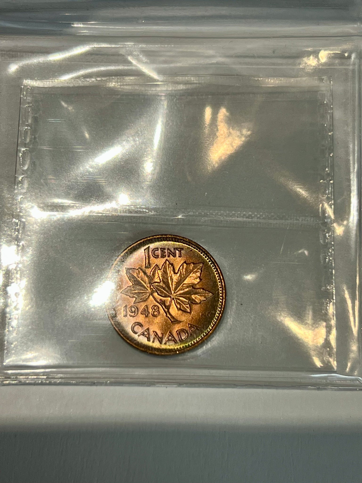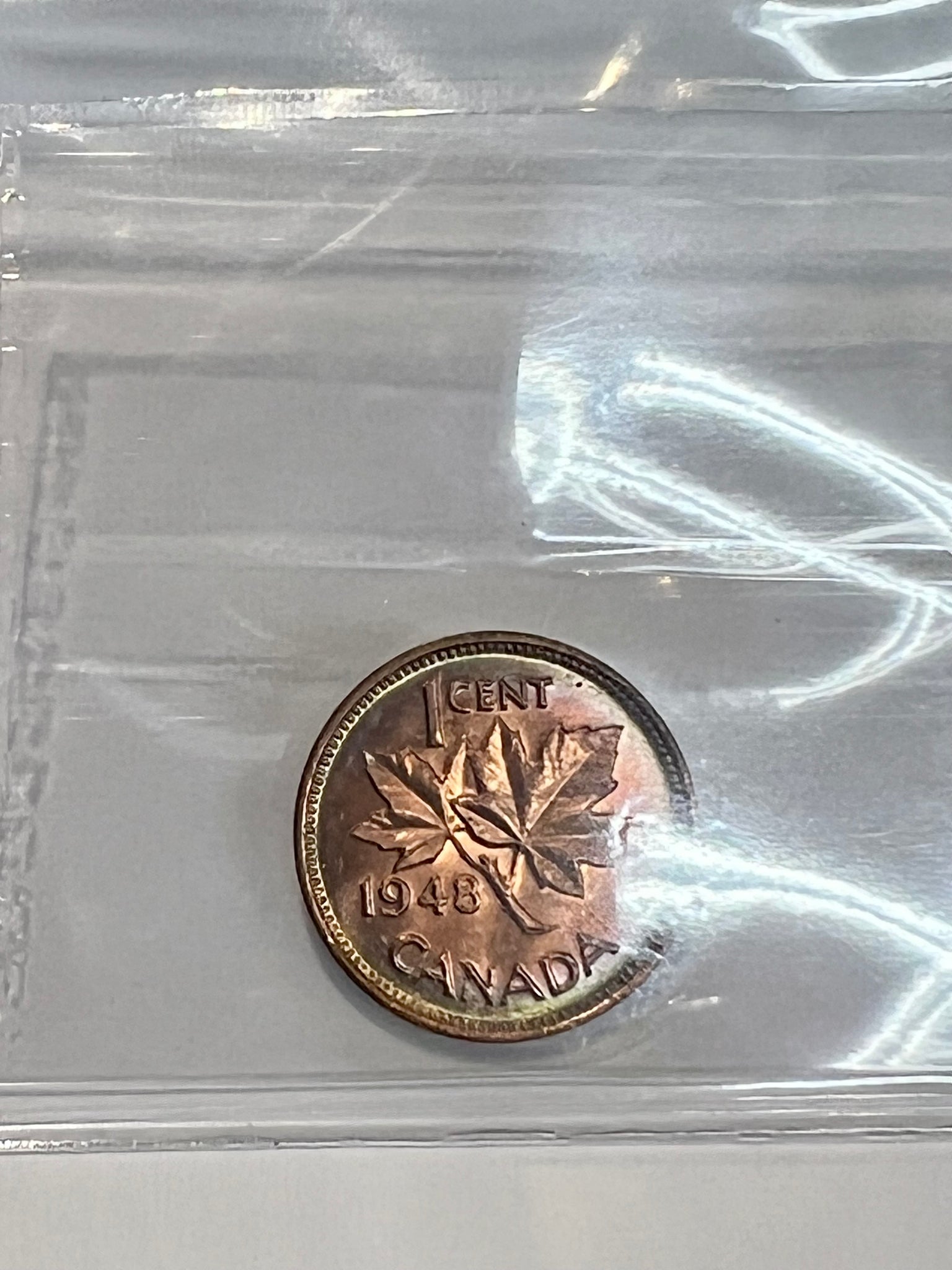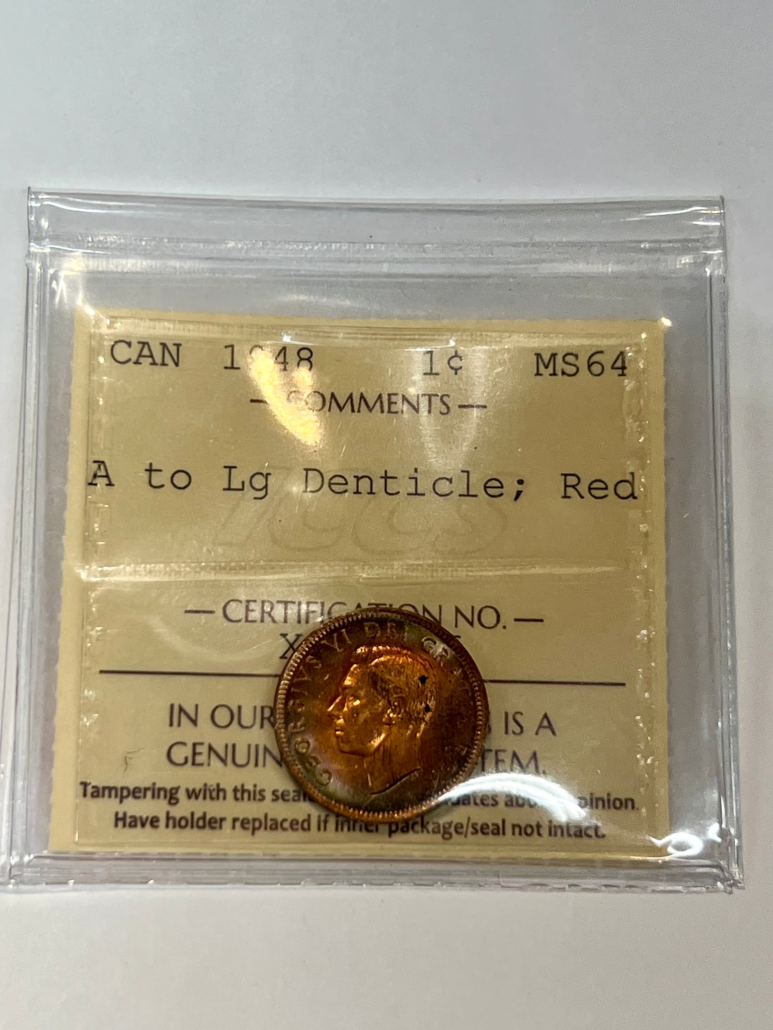 Canada One Cent 1948 A to LG Denticle MS-64 ICCS