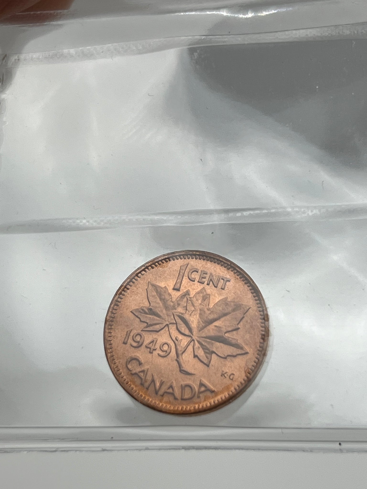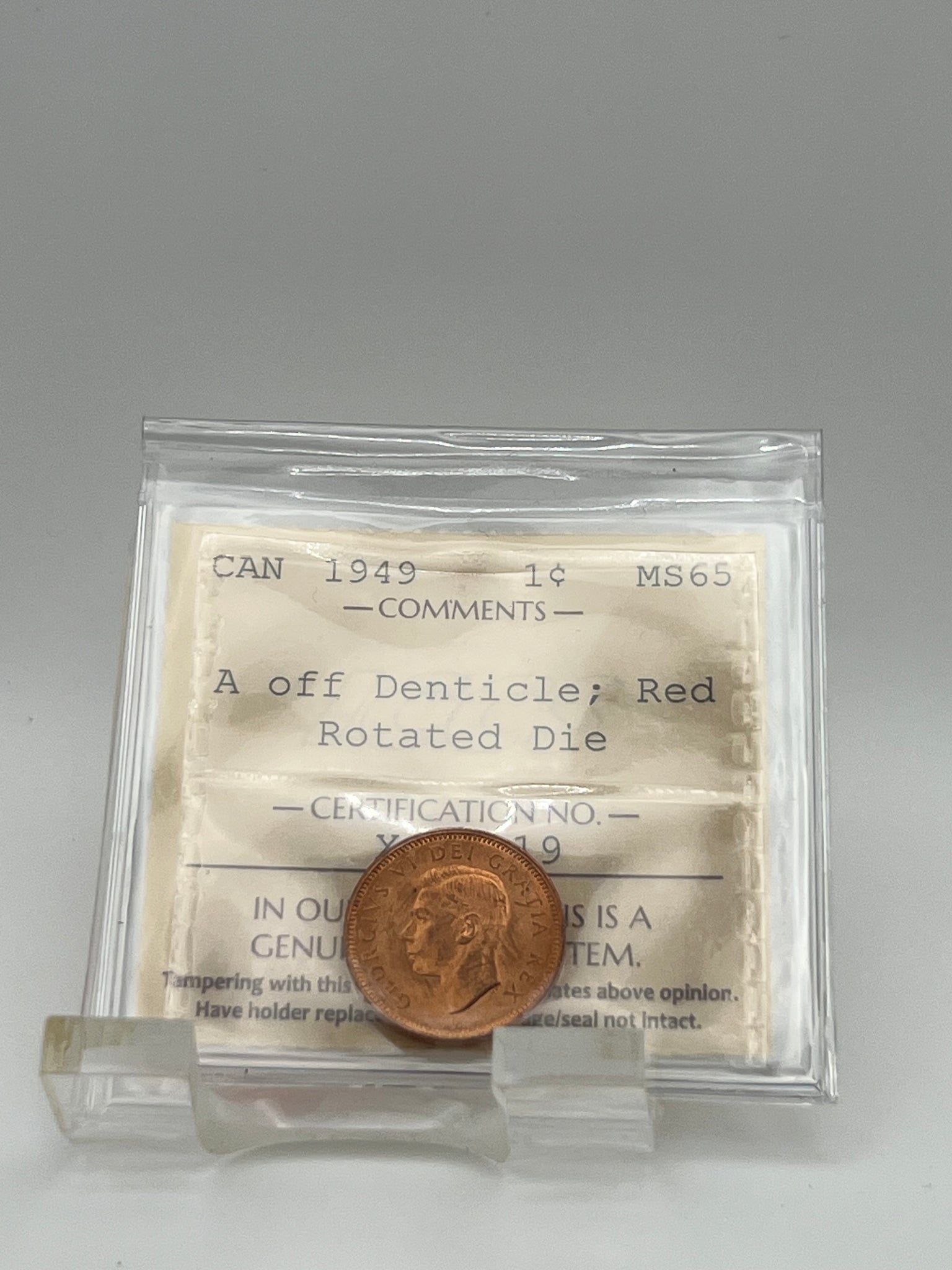 Canada One Cent 1949 A off Denticle MS-65 ICCS-Rotated Die