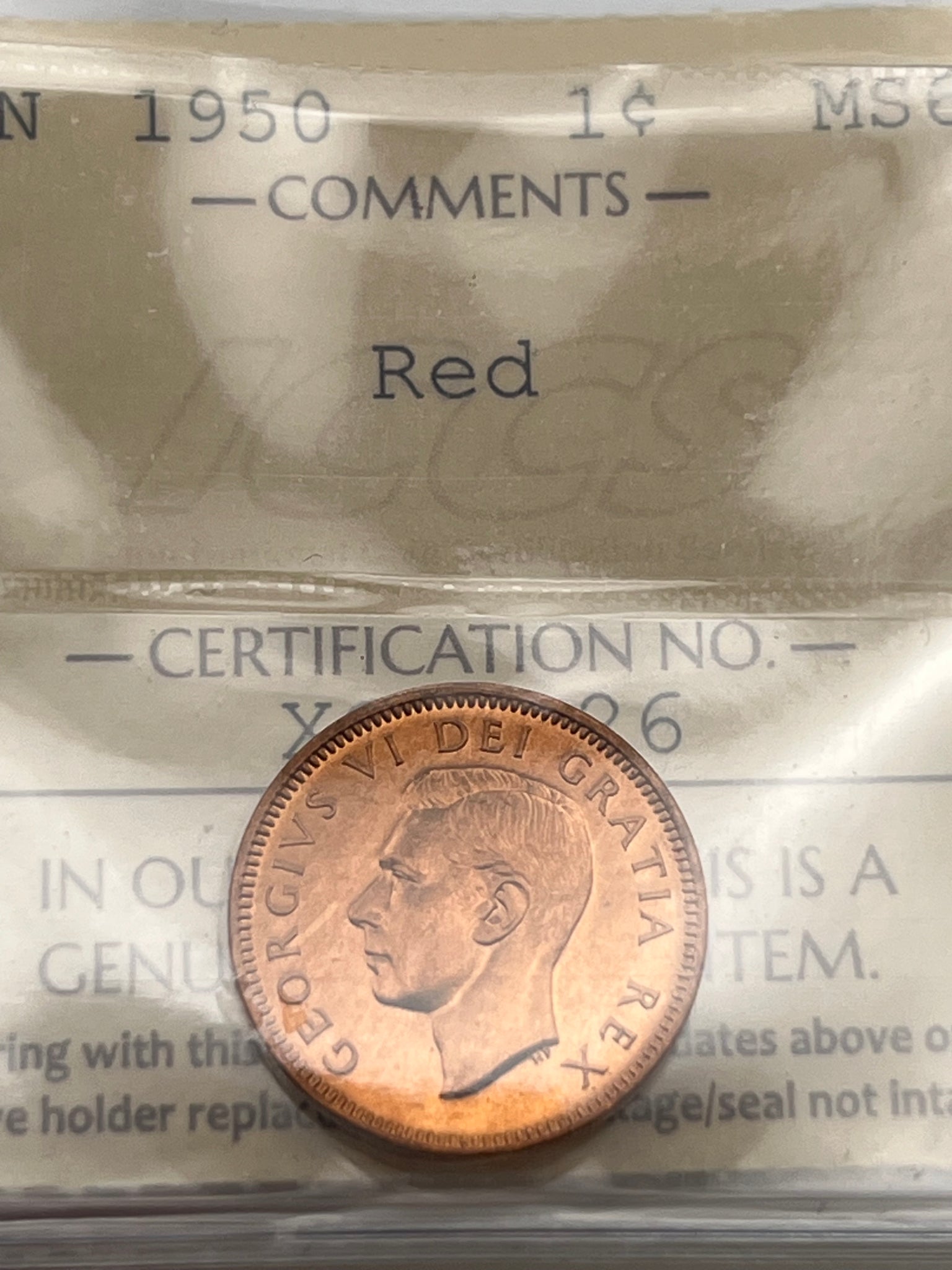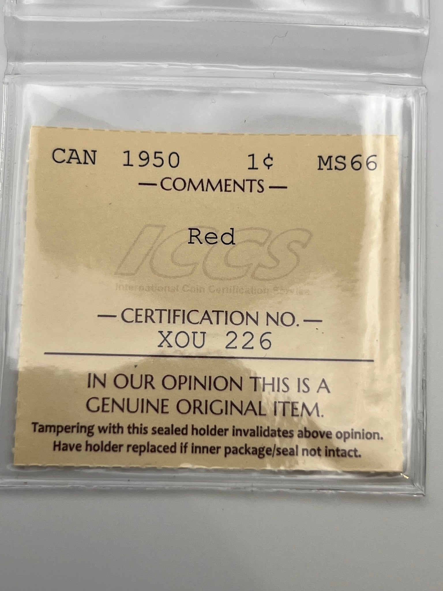 Canada One Cent 1950 MS-66 ICCS