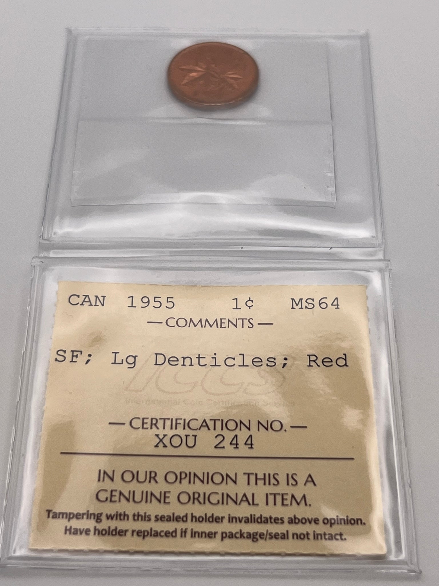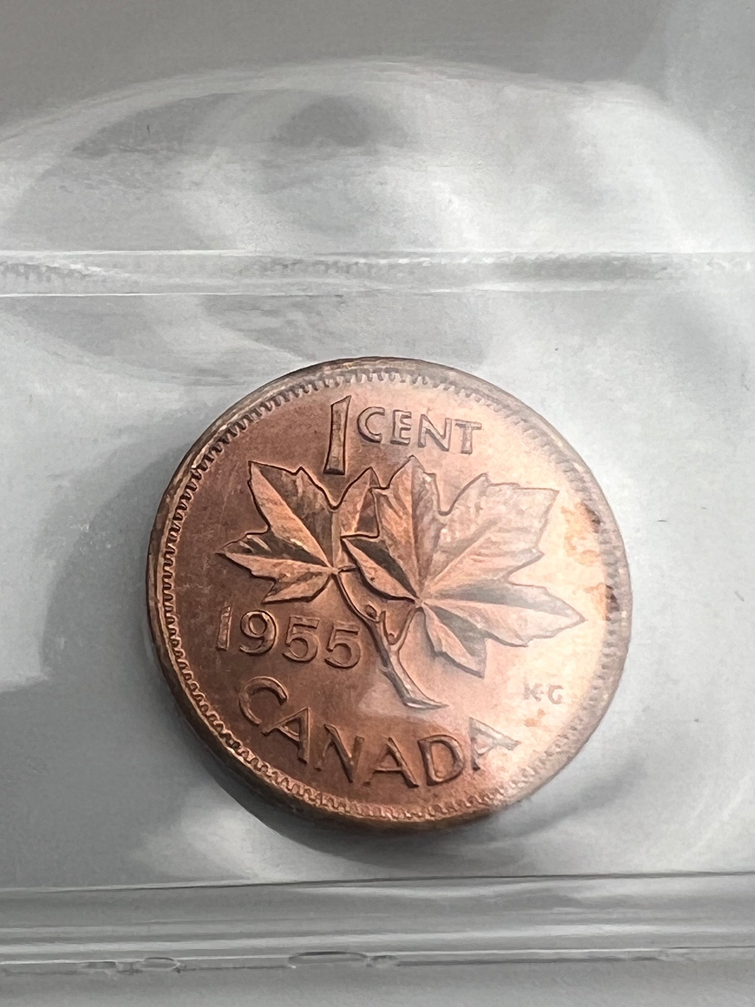 Canada One Cent 1955 MS-64 ICCS-SF-LG-Denticles