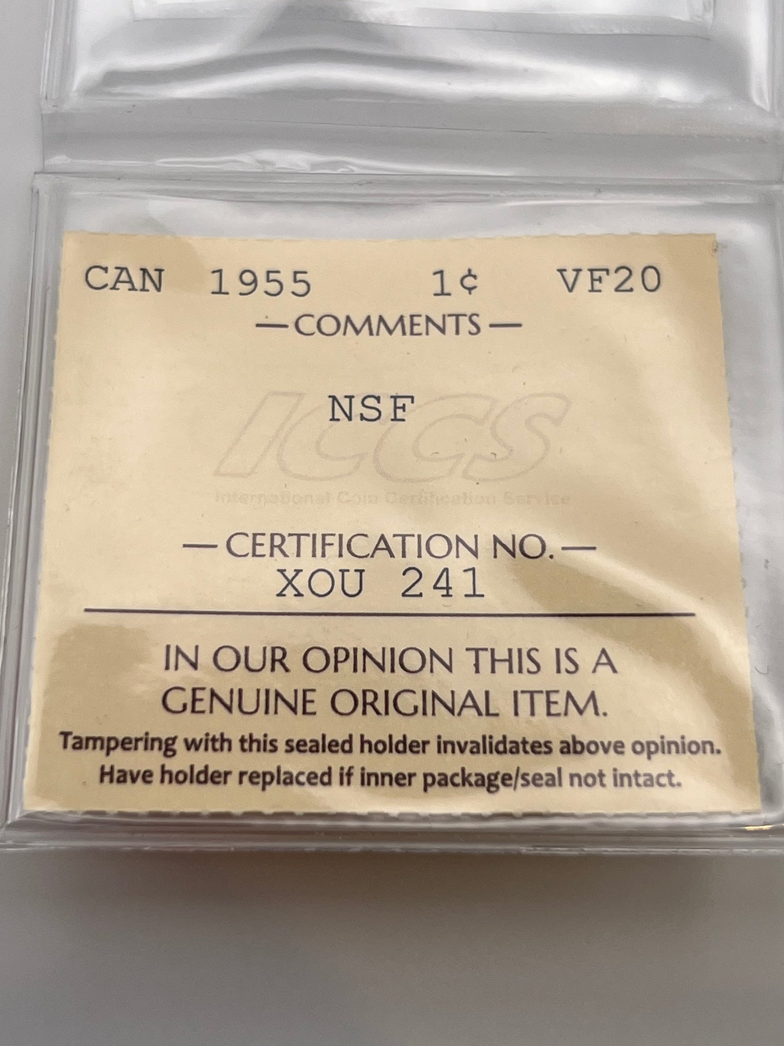 Canada One Cent 1955 VF-20 ICCS-NSF