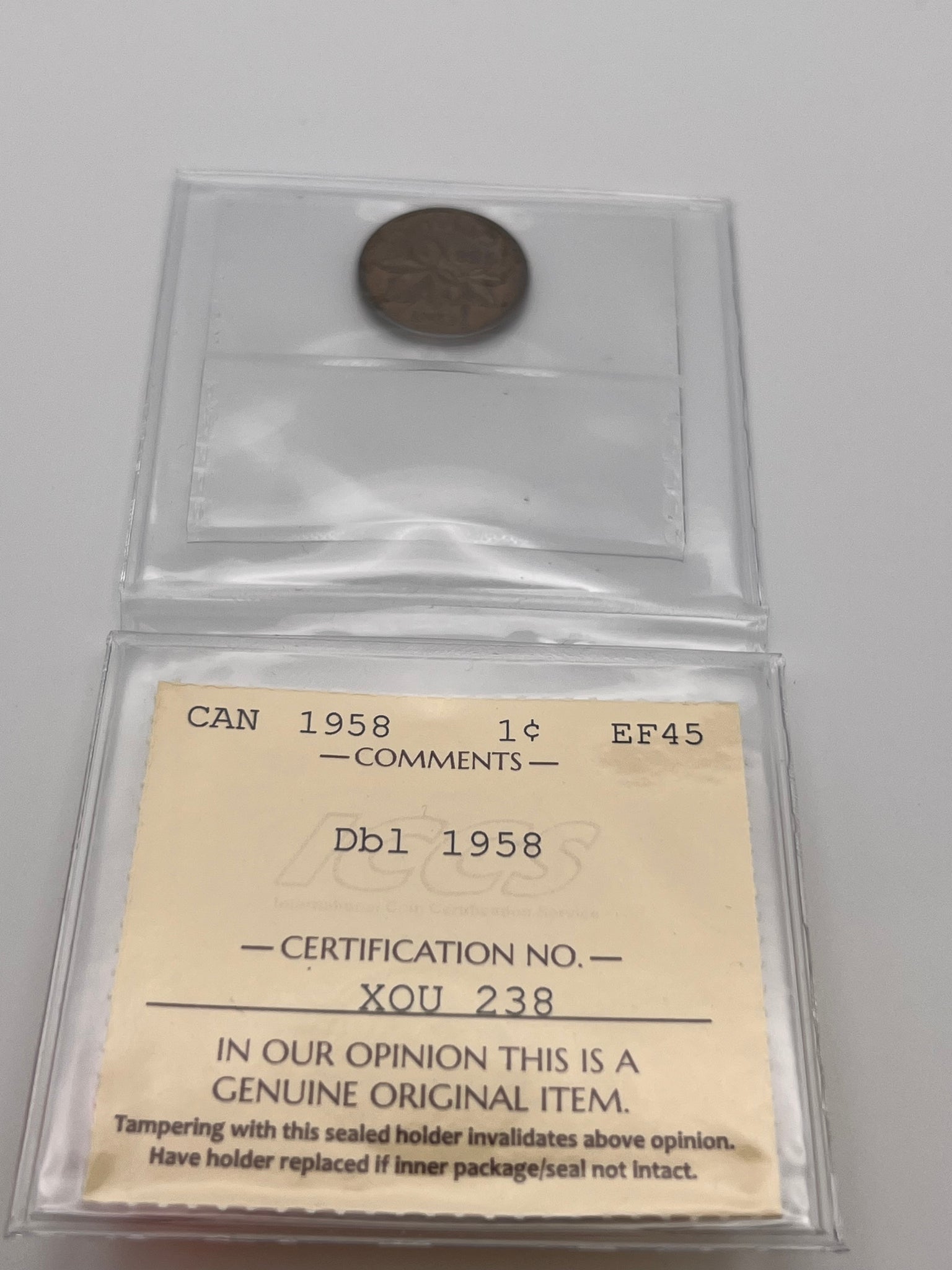 Canada One Cent 1958 EF-45-ICCS-DBL 1958