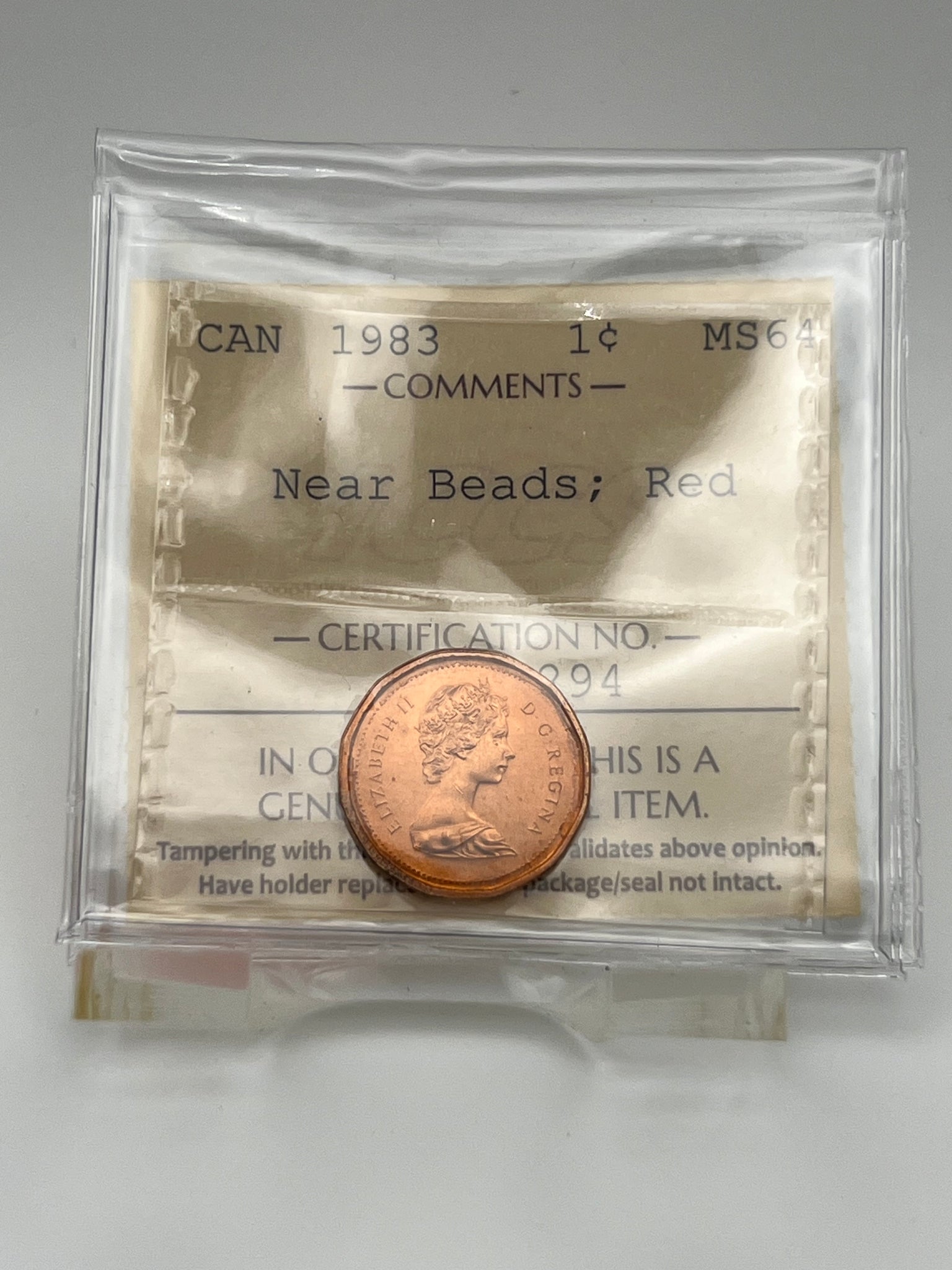 Canada One Cent 1983 MS-64 ICCS-Near Beads