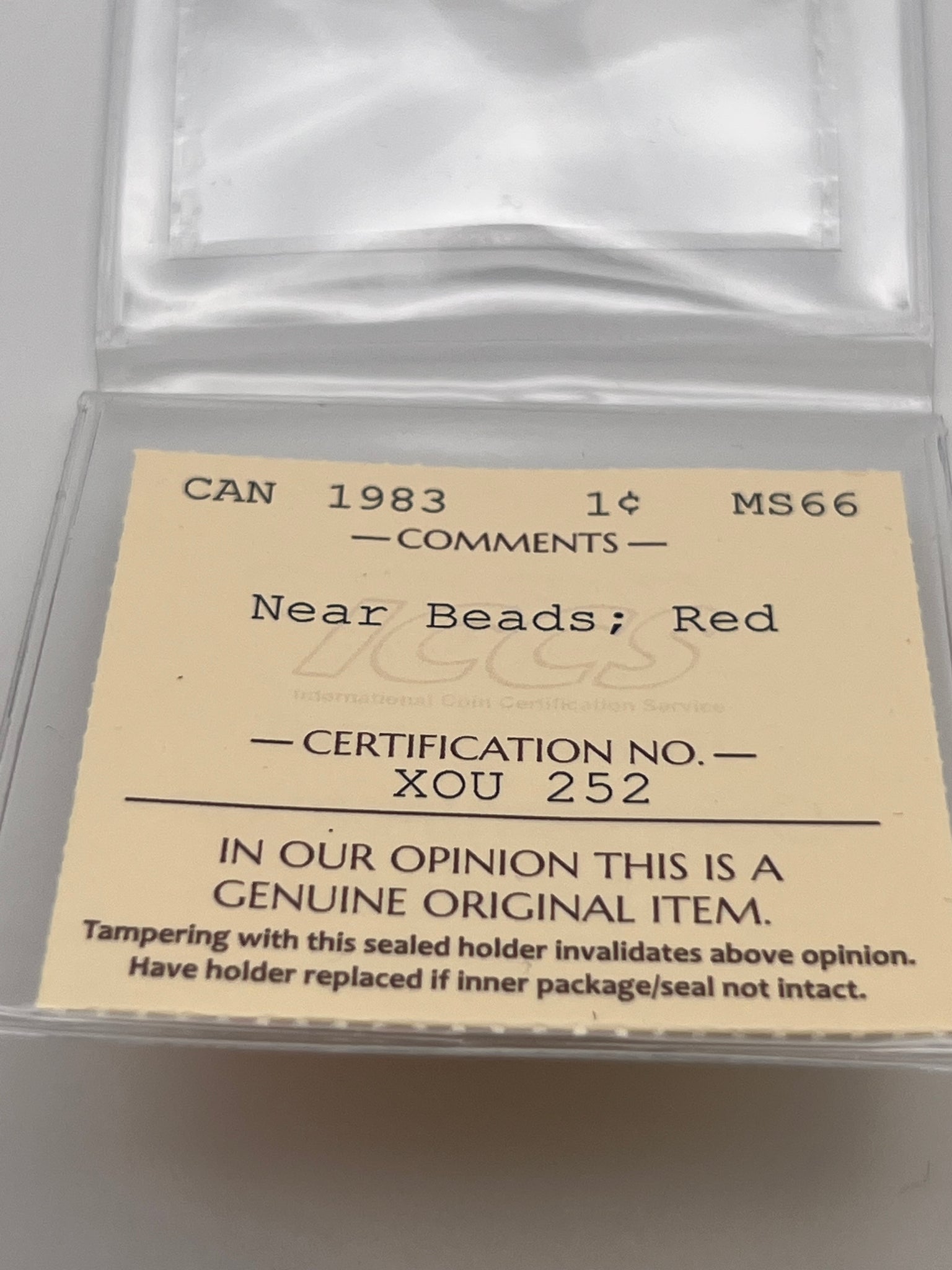 Canada One Cent 1983 MS-66 ICCS-Near Beads