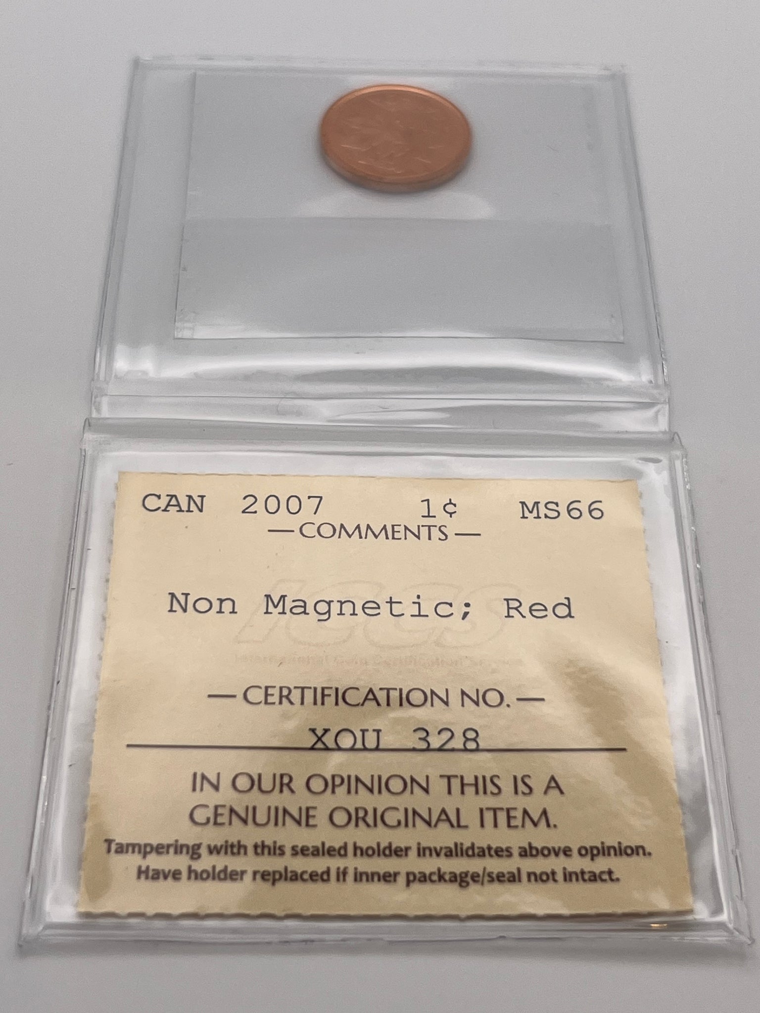 Canada One Cent 2007 MS-66 ICCS-Non Magnetic