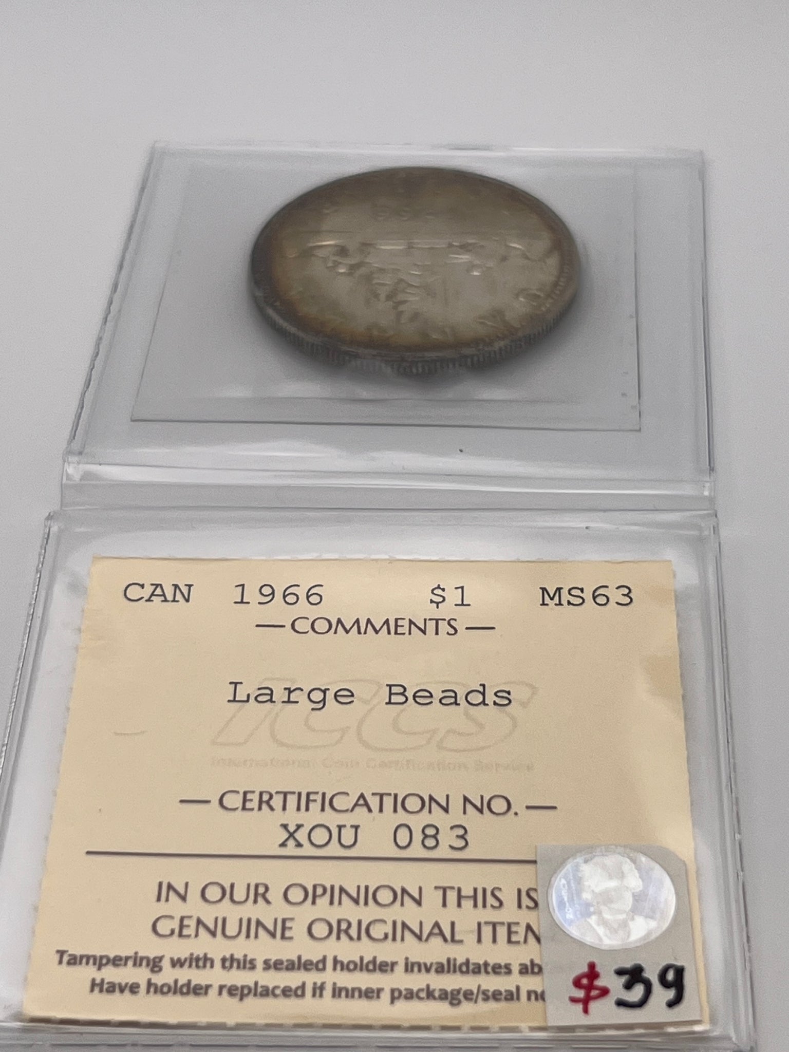 Canada Silver One Dollar 1966 MS-63 ICCS-Large beads