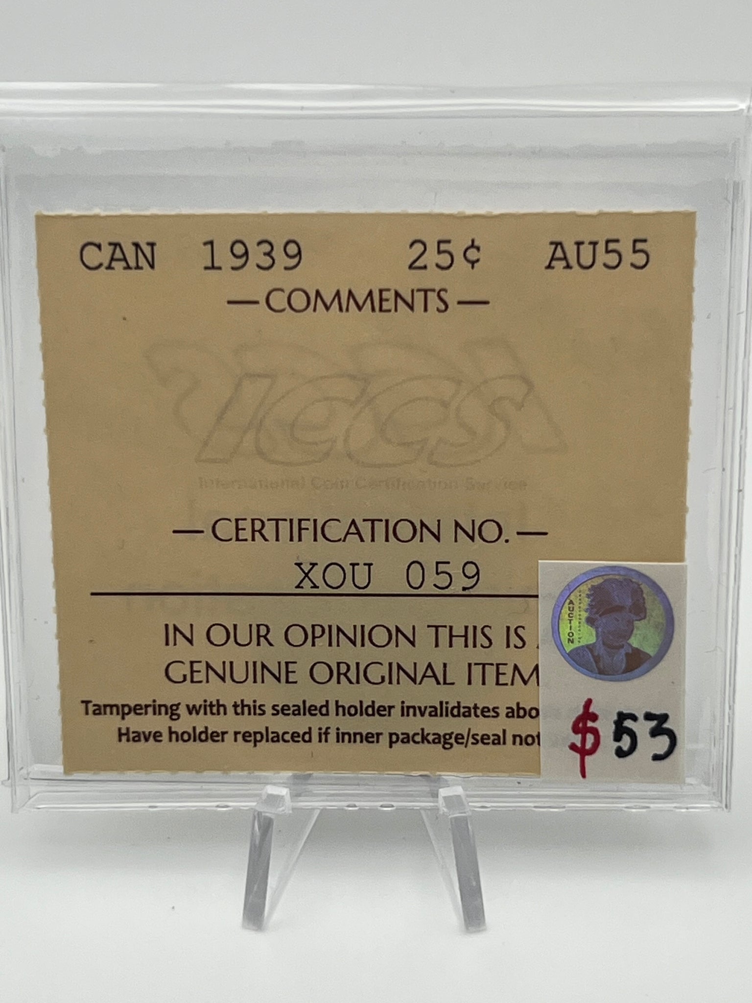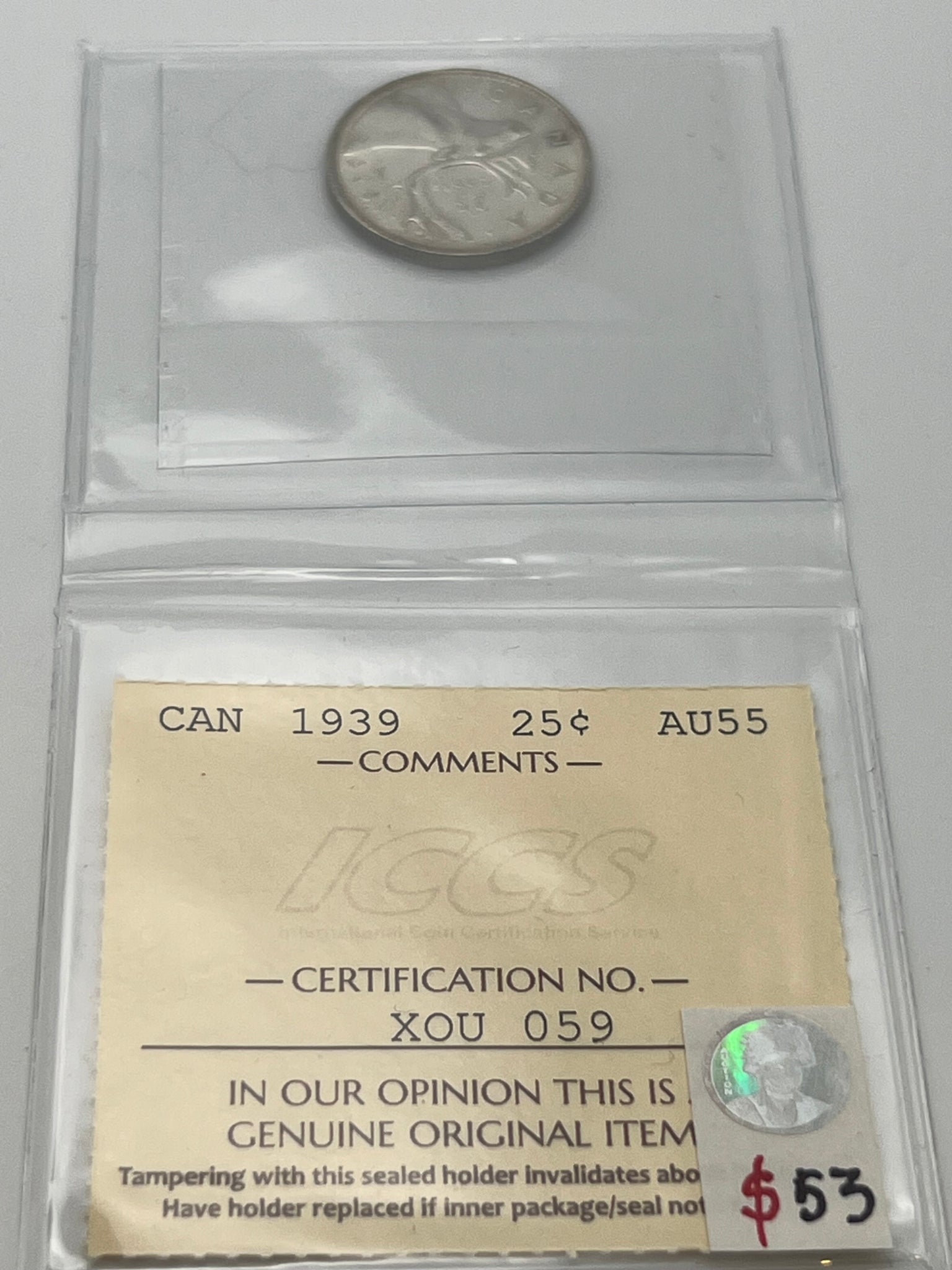 CANADA SILVER TWENTY-FIVE CENT 1939 ICCS AU-55