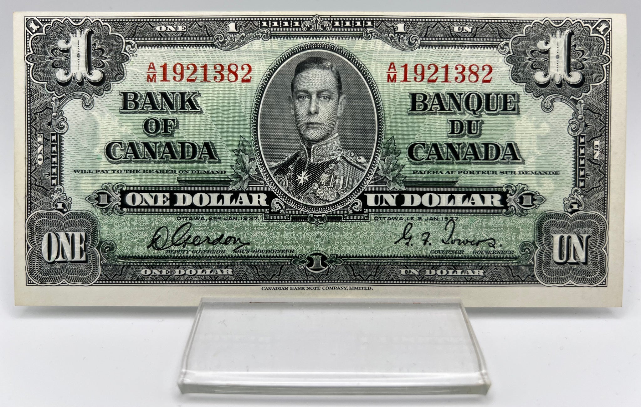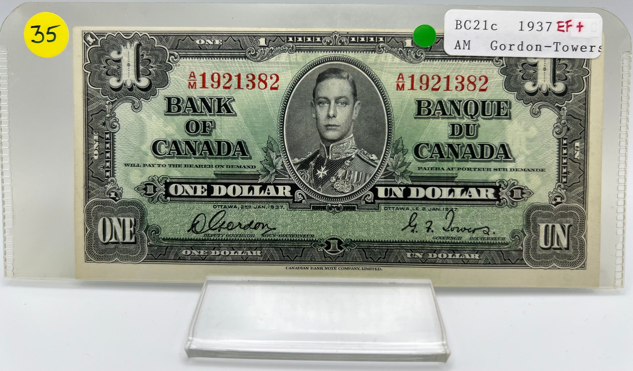 1937 Bank of canada BC-21c One Dollars EF-45 Gordon Towers, Serial-AM 1921382