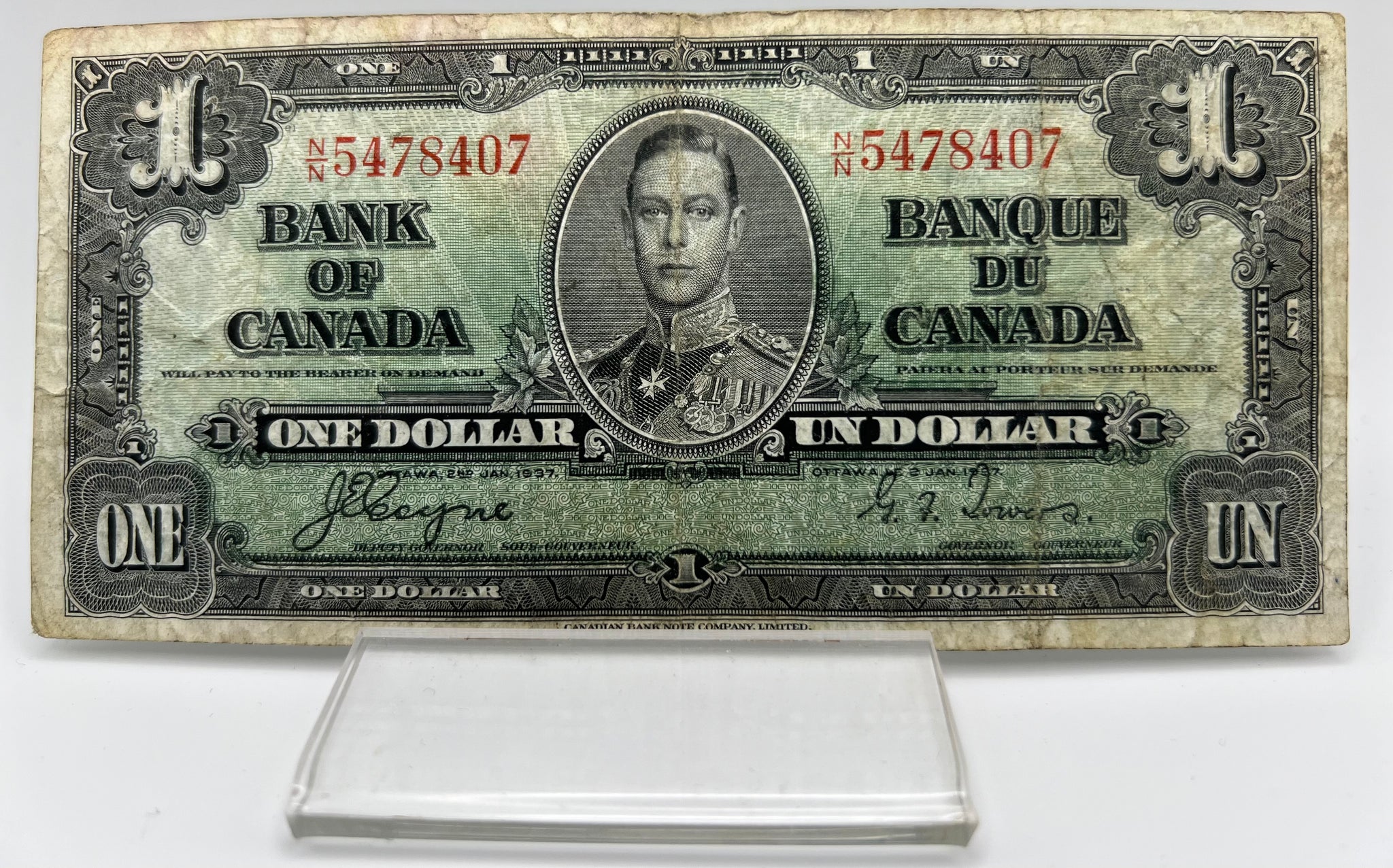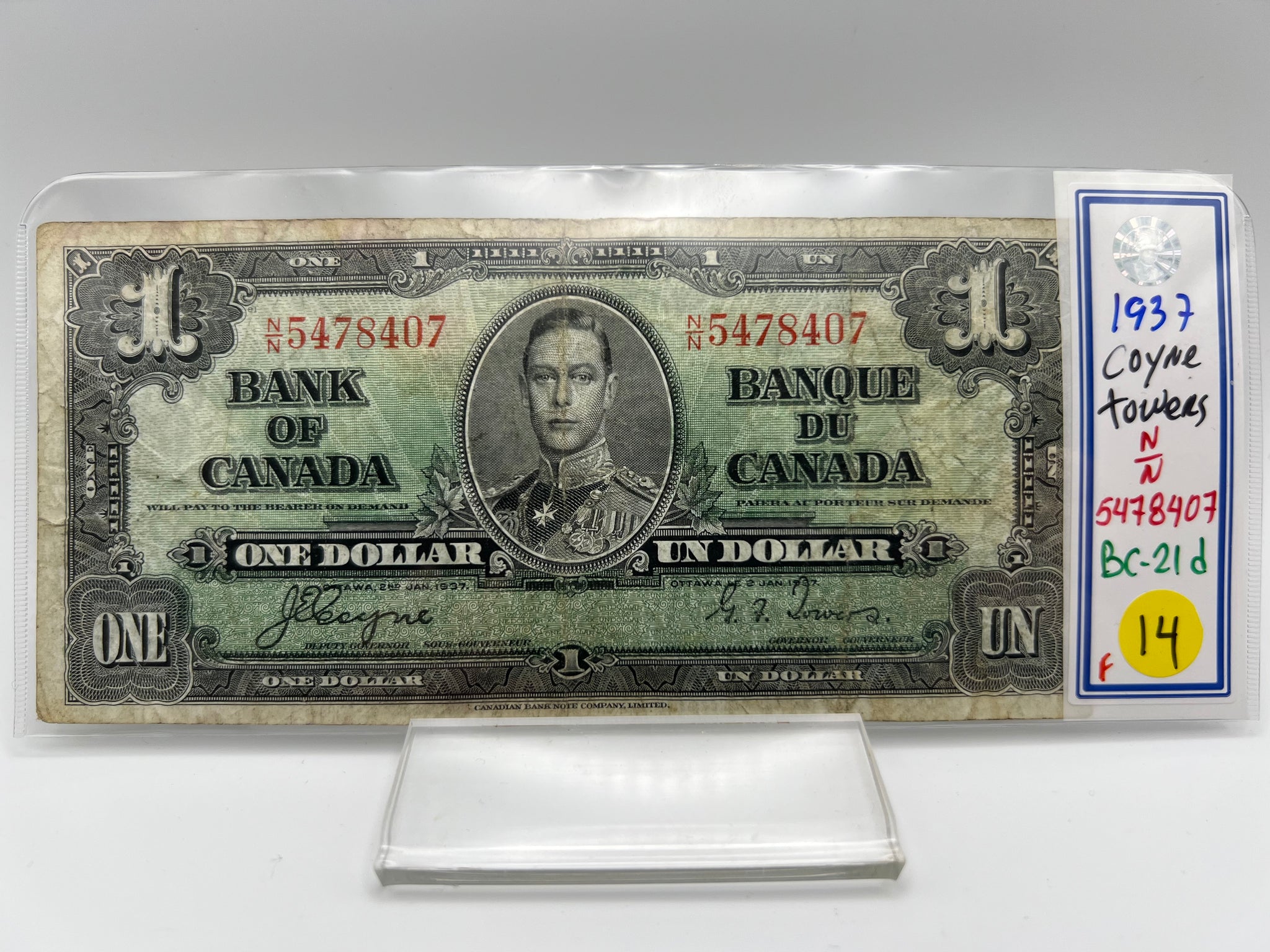 1937 Bank of canada BC-21c One Dollars f-12 Coyne Towers, Serial-NN 5478407