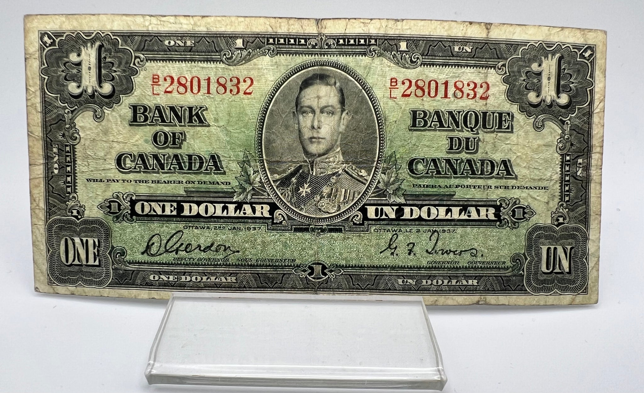 1937 Bank of canada BC-21c One Dollars f-12 Gordon Towers, Serial-BL 2801832