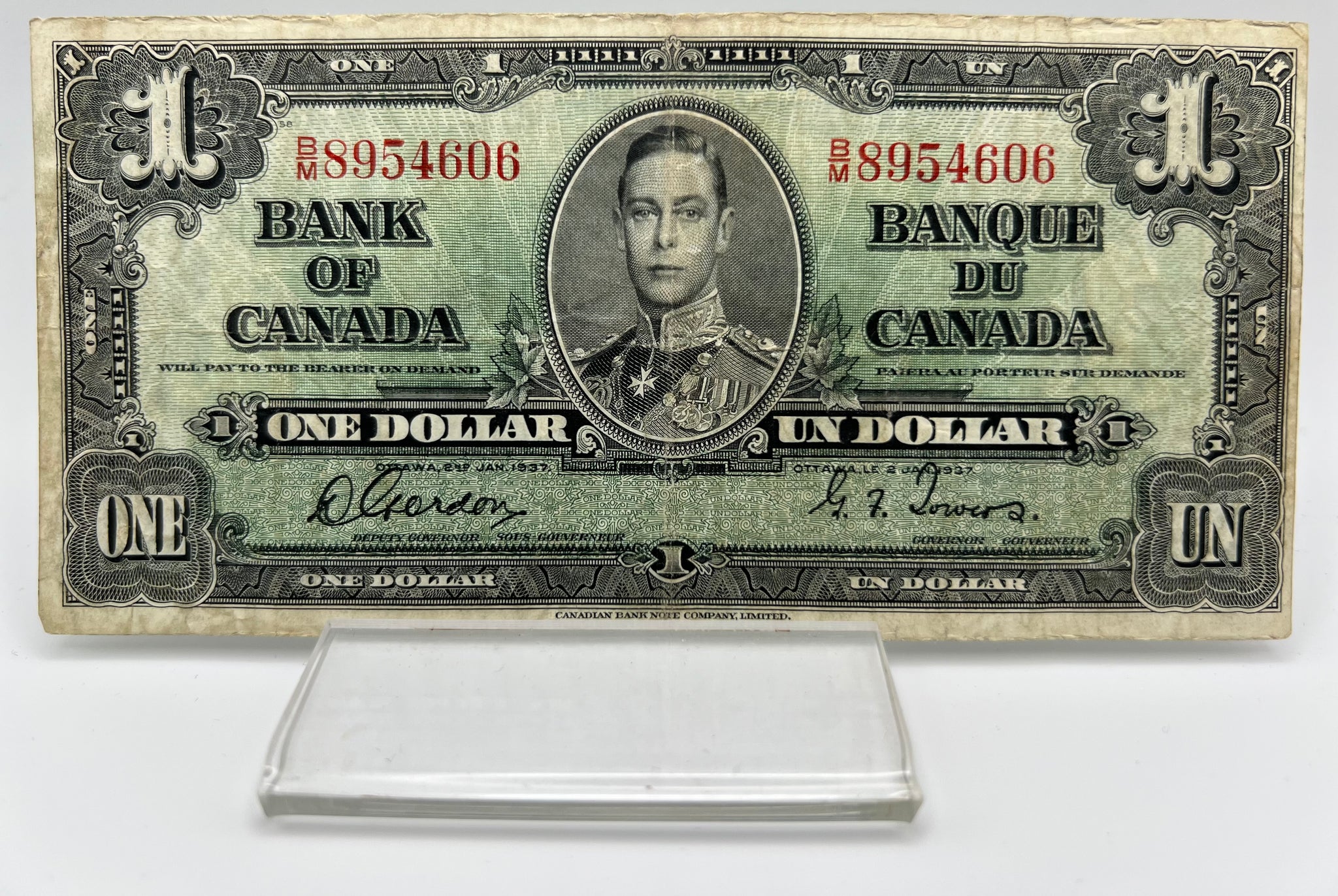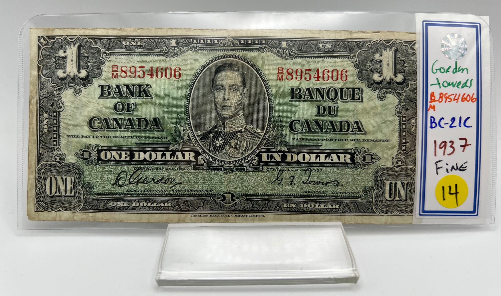 1937 Bank of canada BC-21c One Dollars f-12 Gordon Towers, Serial-BM 8954606