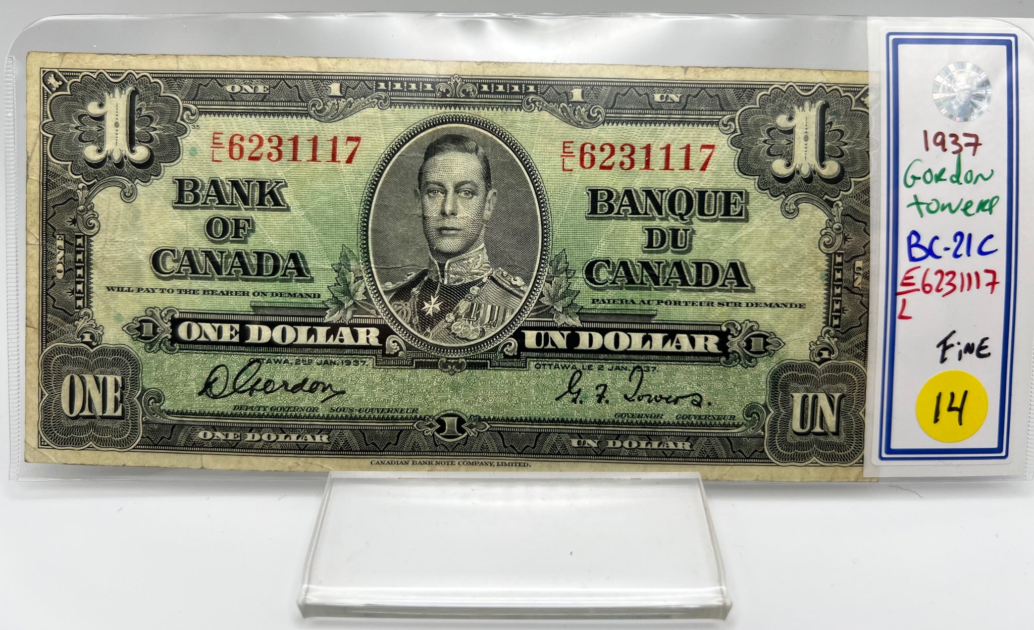 1937 Bank of canada BC-21c One Dollars F-12 Gordon Towers, Serial-EL 6231117