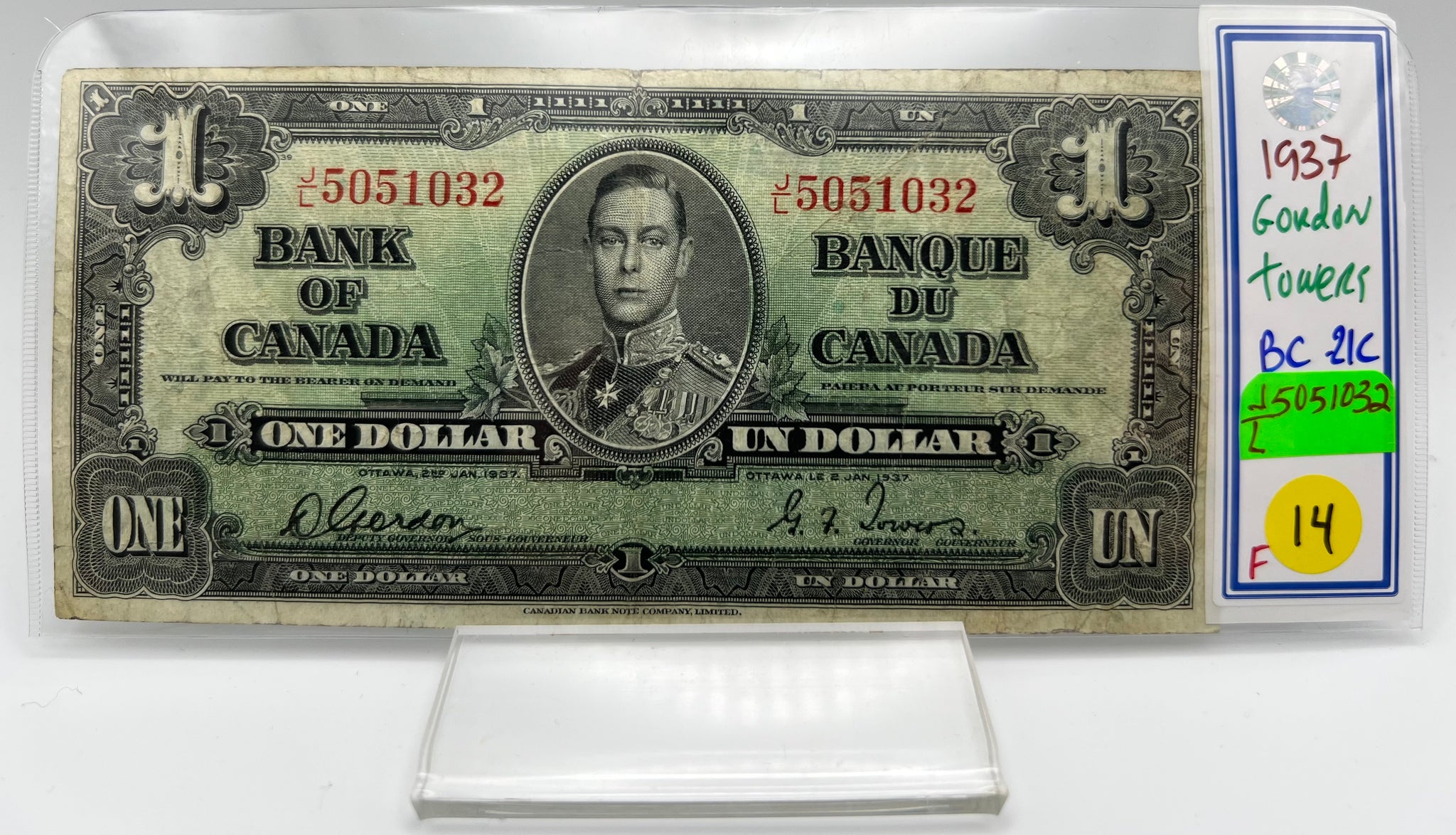 1937 Bank of canada BC-21c One Dollars f-12 Gordon Towers, Serial-JL 5051032