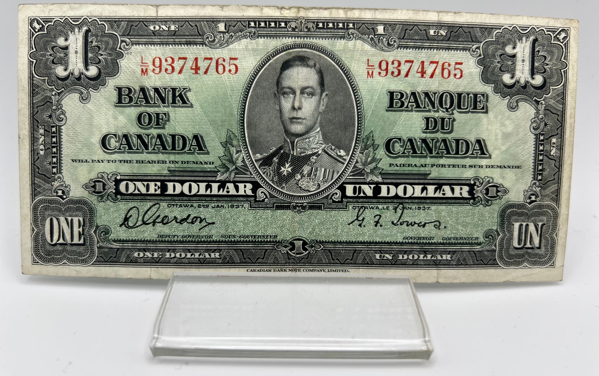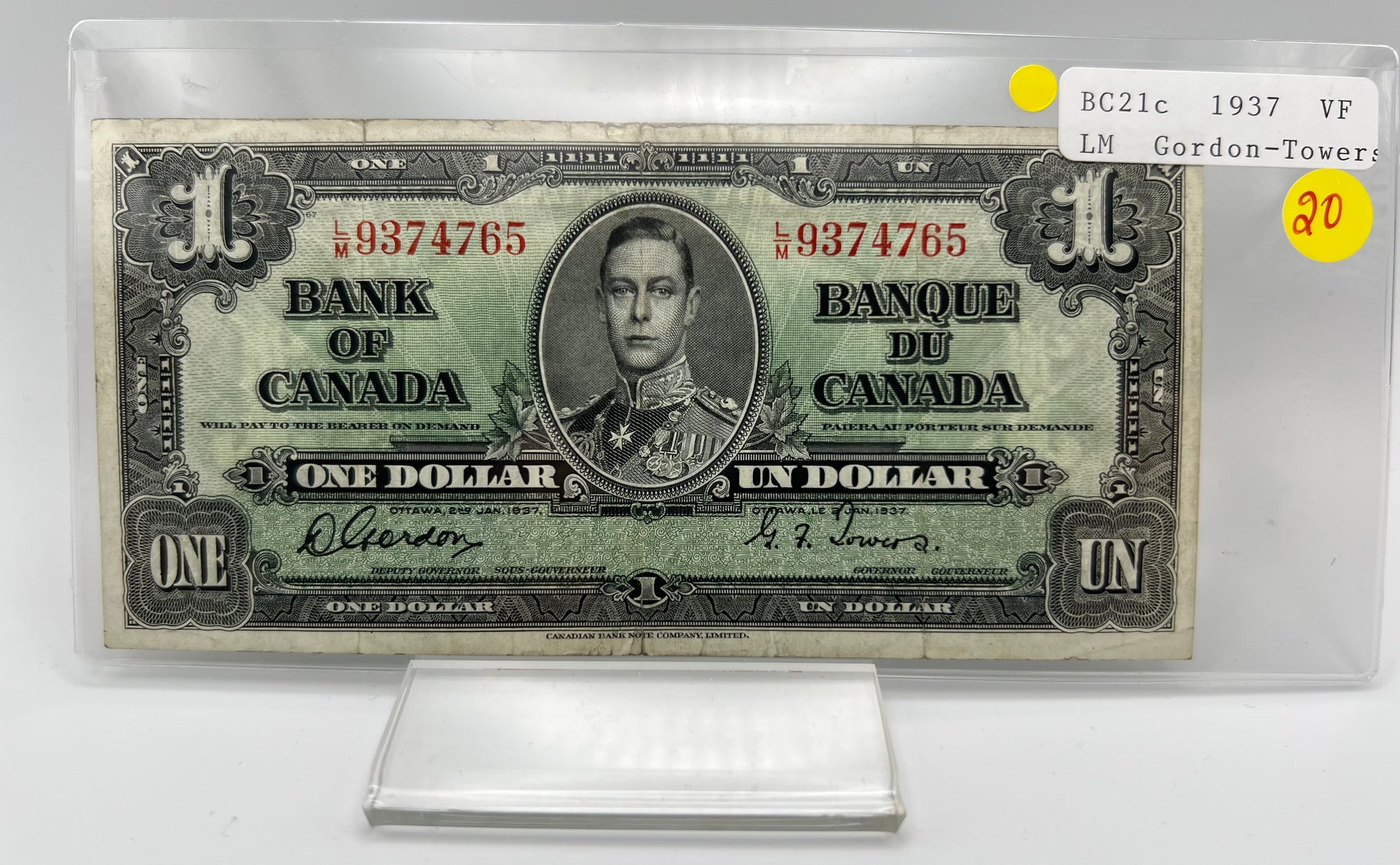 1937 Bank of canada BC-21c One Dollars VF-20 Gordon Towers, Serial-LM 9374765