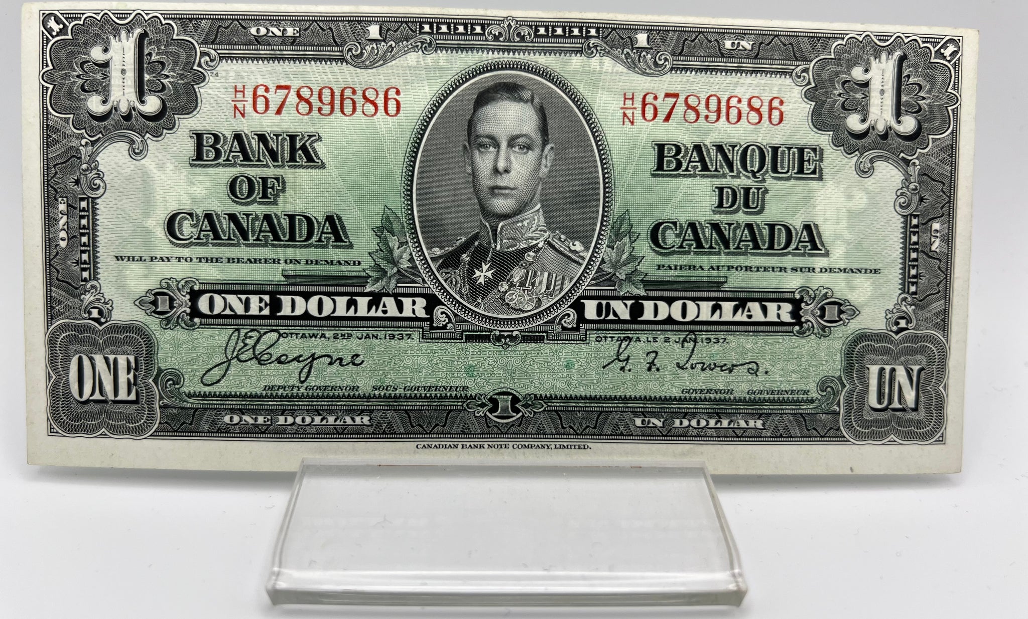 1937 Bank of canada BC-21d One Dollars AU-50 Coyne Towers, Serial-HN 6789686