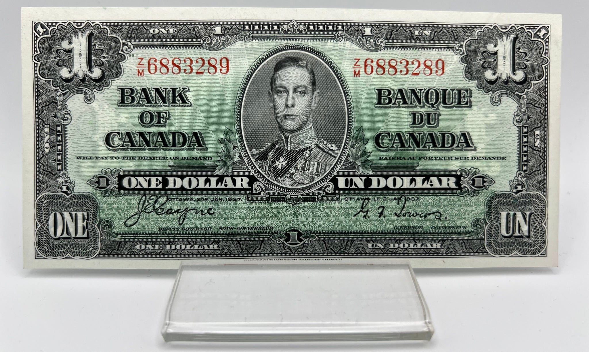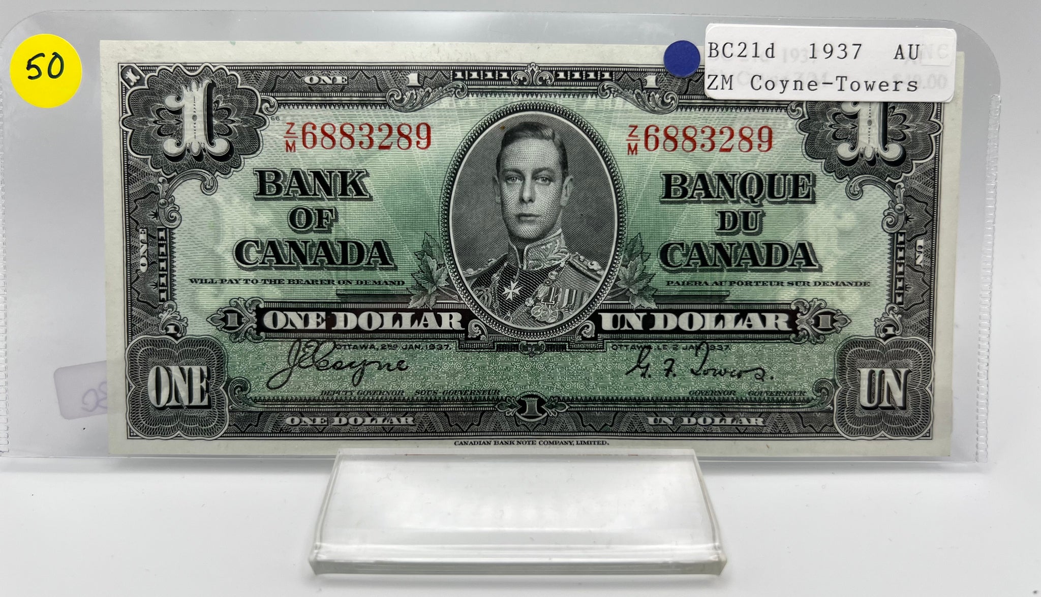 1937 Bank of canada BC-21d One Dollars AU-50 Coyne Towers, Serial-ZM 6883289