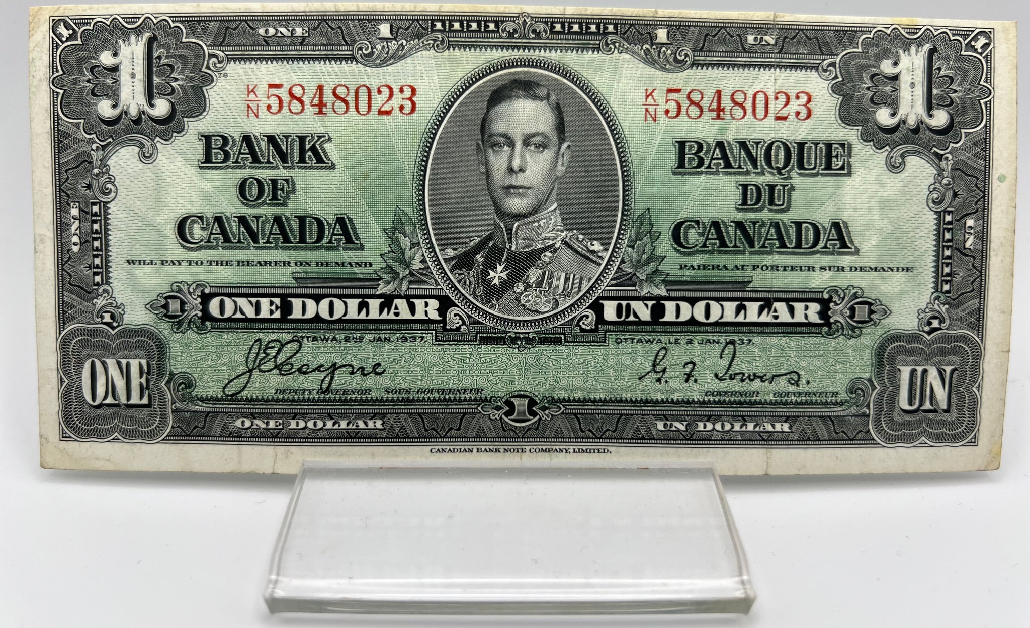 1937 Bank of canada BC-21d One Dollars EF-40 Coyne Towers, Serial-KN 5848023